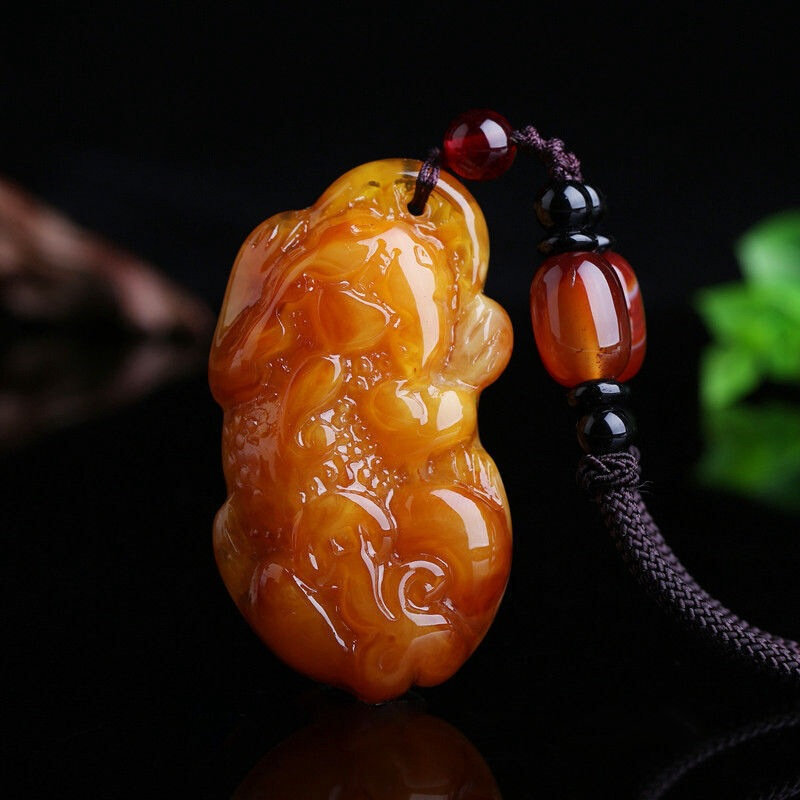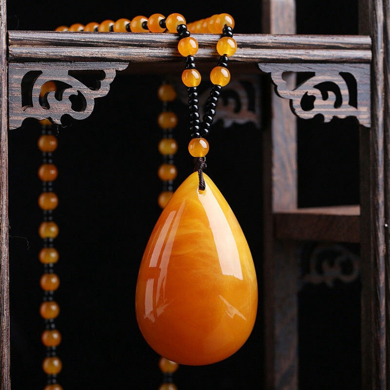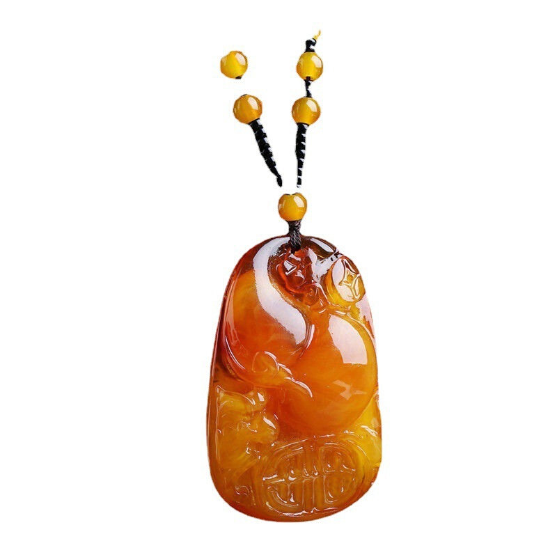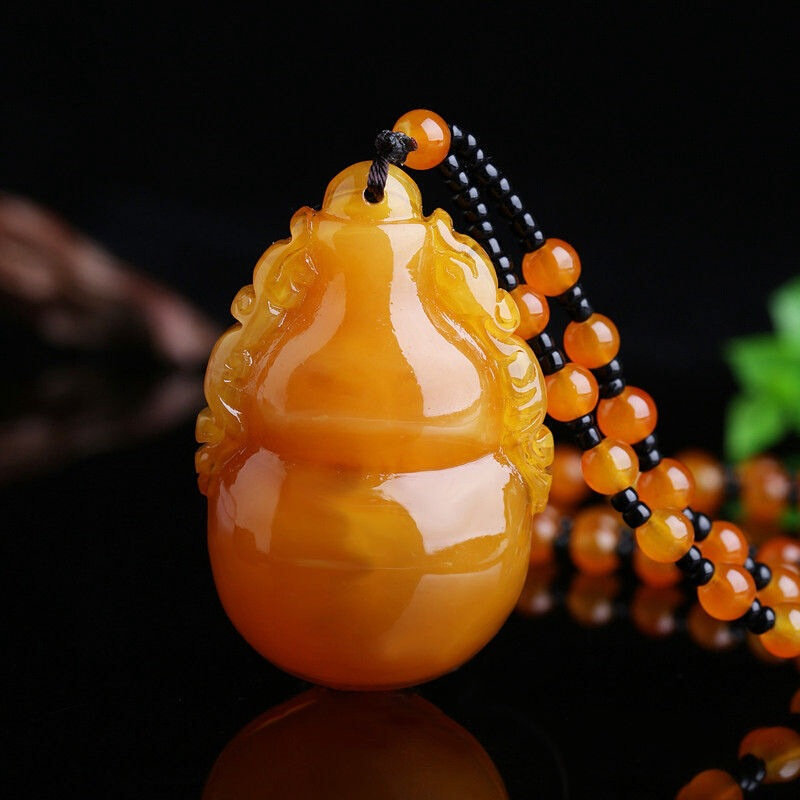 仿蜜蜡吊坠老蜜蜡水滴琥珀雕刻鸡男女民族风毛衣链长款项链葫芦