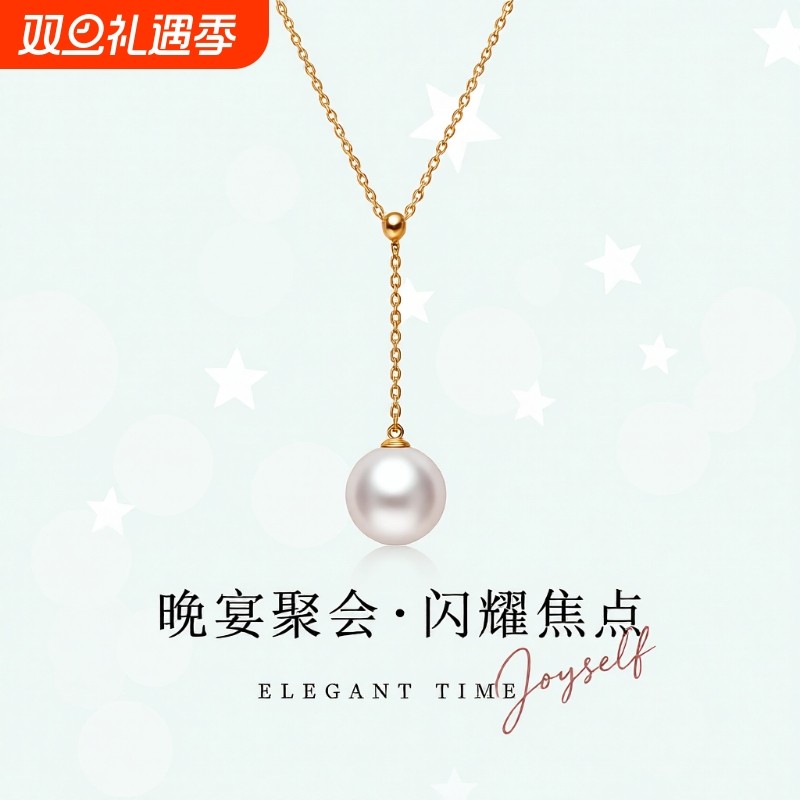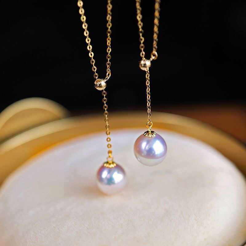 诸暨淡水气质珍珠可调节18k金白色项链网红吊坠经典Y字锁骨链黄金