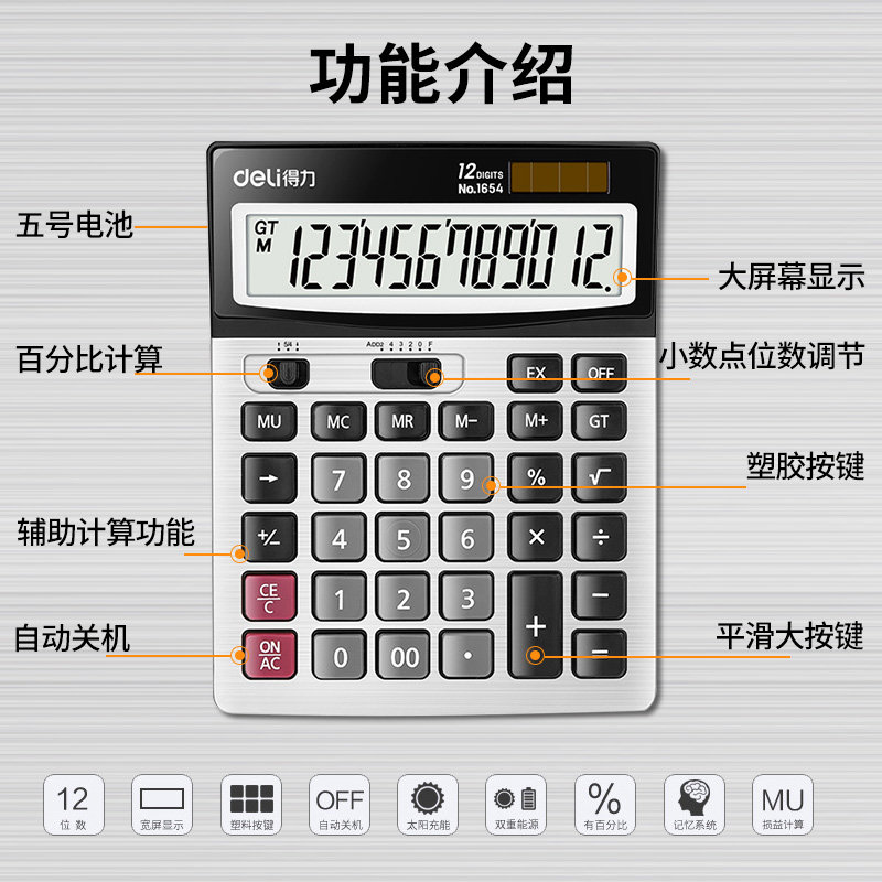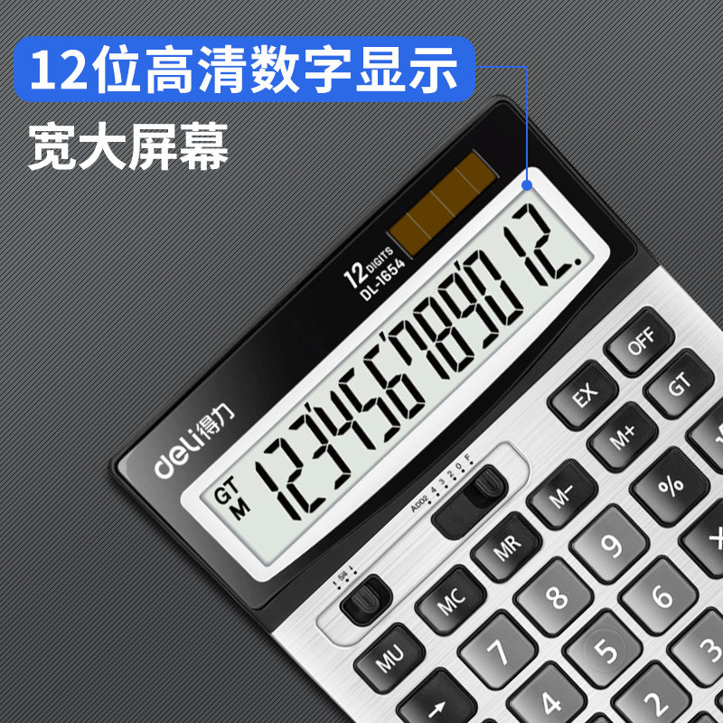 得力计算器1654商务办公大屏幕语音双电源大按键财务会计真人发音