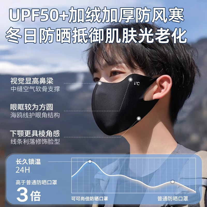 美拉德秋冬保暖口罩骑行防风御寒无痕显瘦修饰小脸型可水洗护眼角