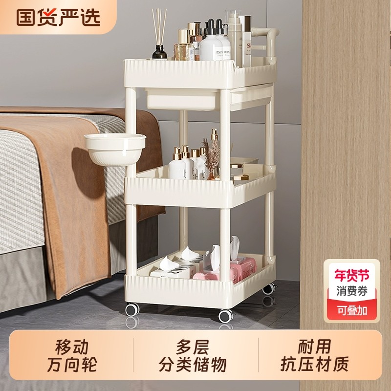 小推车置物架厨房落地多层客厅移动书架子婴儿卧室零食收纳储物架