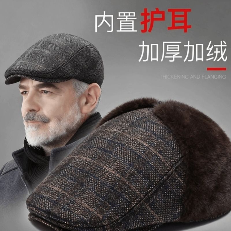 春秋老人帽子男士冬季中老年人爸爸爷爷贝雷帽冬天老头保暖鸭舌帽