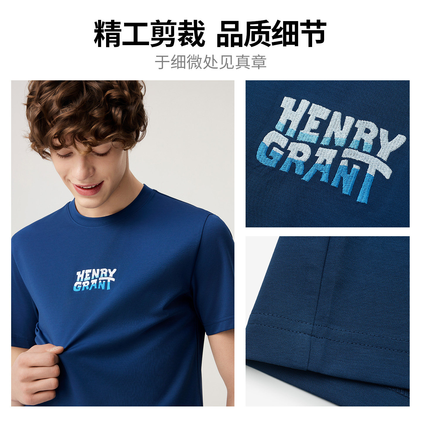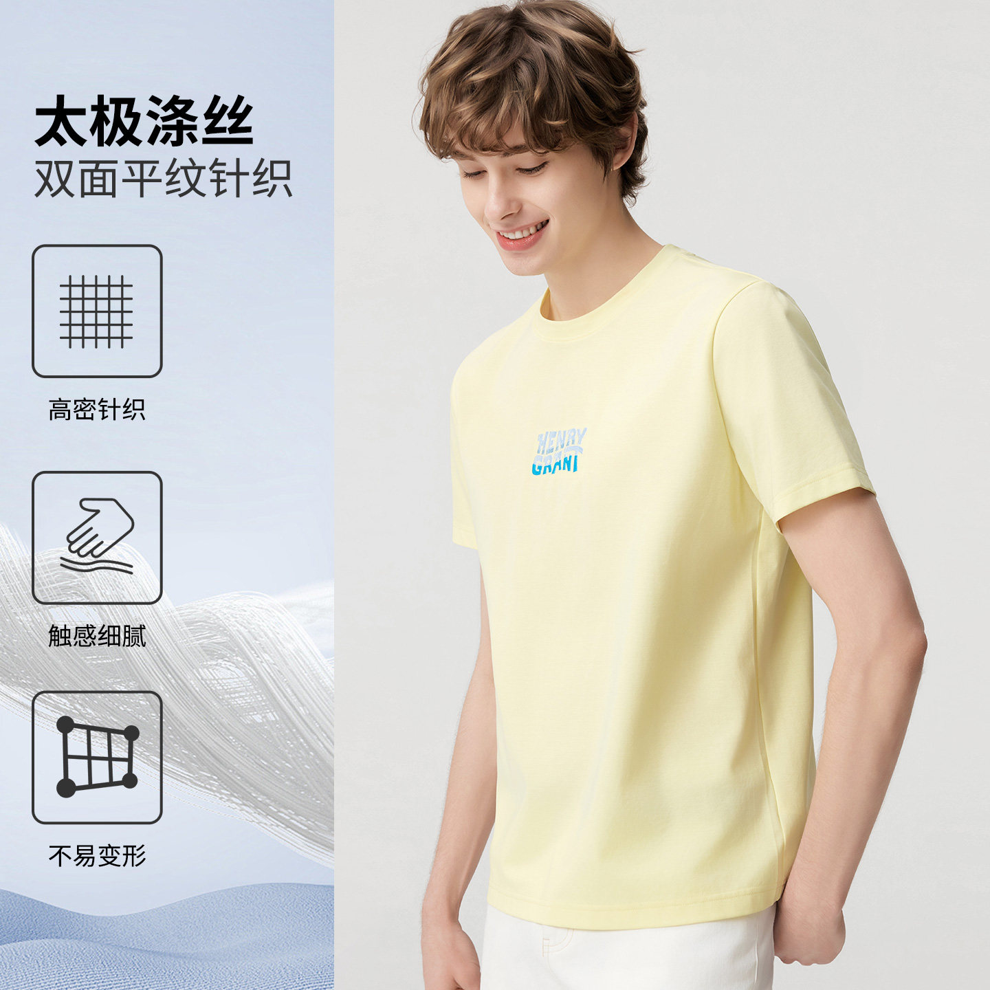 【太极丝】亨利格兰字母圆领短袖男士2026年夏季新款潮流百搭T恤