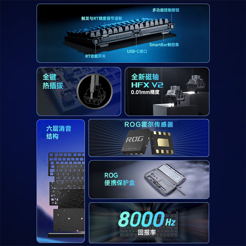 【重磅新品】ROG魔导士Ace75HE磁轴键盘8K回报小蜜蜂战队夺冠键盘
