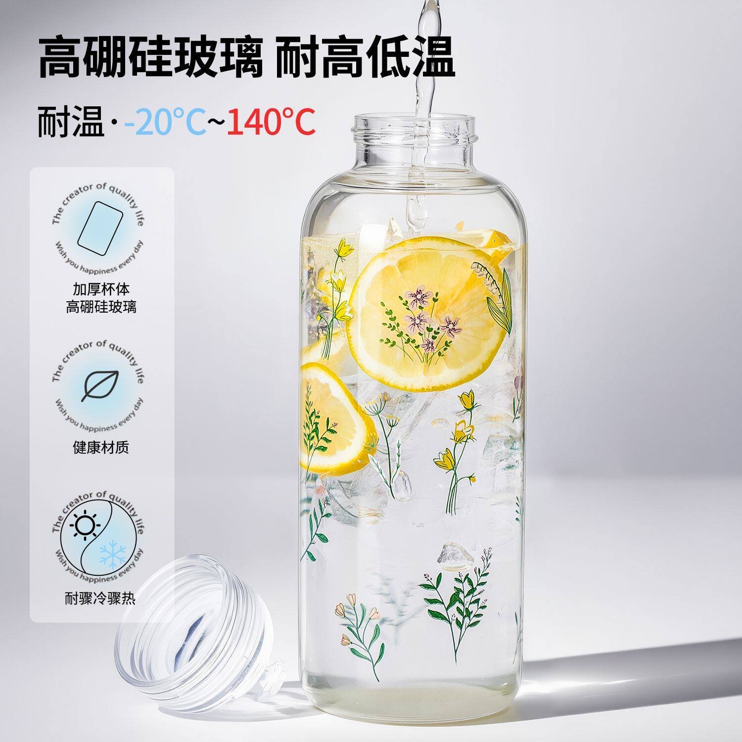 玻璃杯大容量1000ml高硼硅泡茶杯女办公室家用喝水杯子吸管杯新款