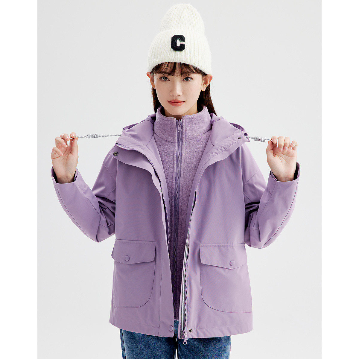 骆驼山海夹克女装2025秋冬紫色加绒外套女户外工装百搭保暖登山服