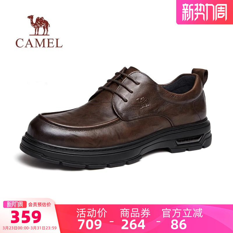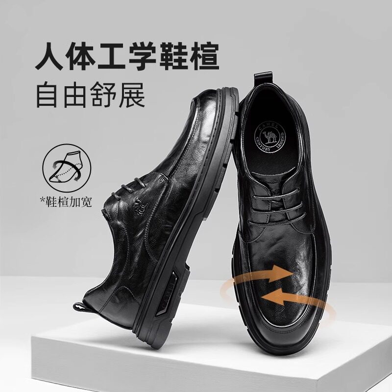 骆驼男鞋2026春季新款舒适皮鞋百搭软底真皮德比鞋商务休闲皮鞋男