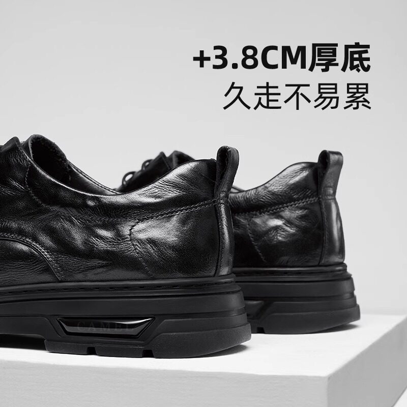 【小牛皮】青润chioryn袋鼠鞋男黑色真皮增高厚底休闲通勤风皮鞋