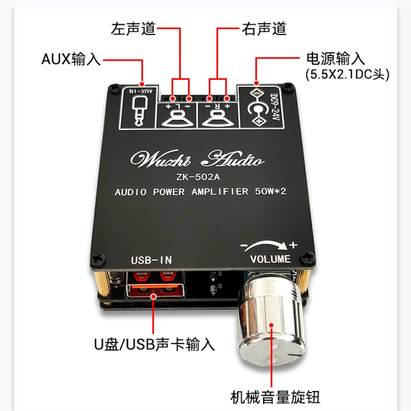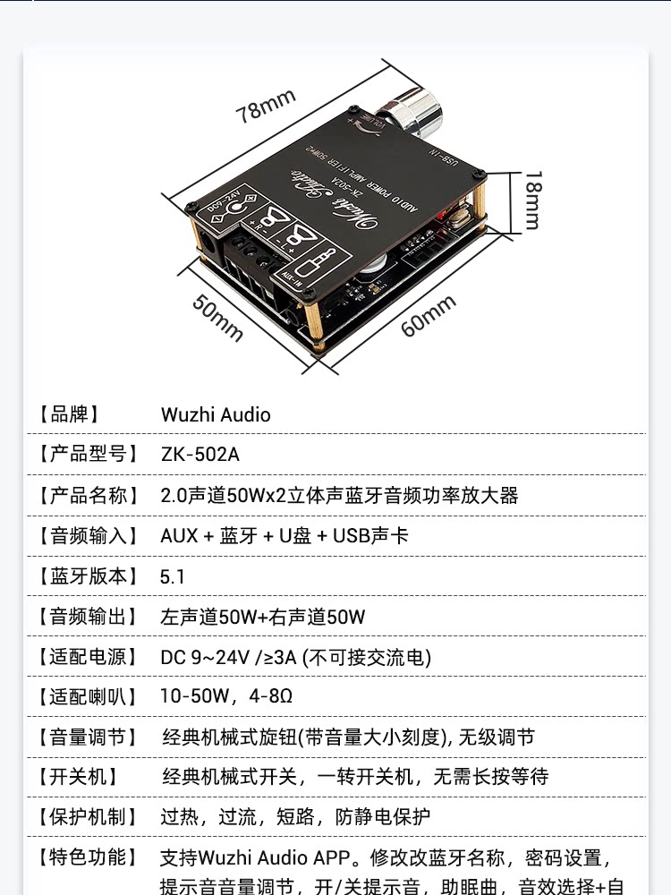 蓝牙数字迷你立体声功放机U盘AUX接电脑APP控制50W+50W可选配电源