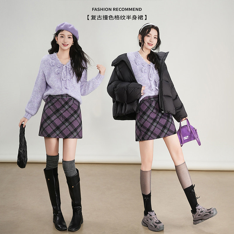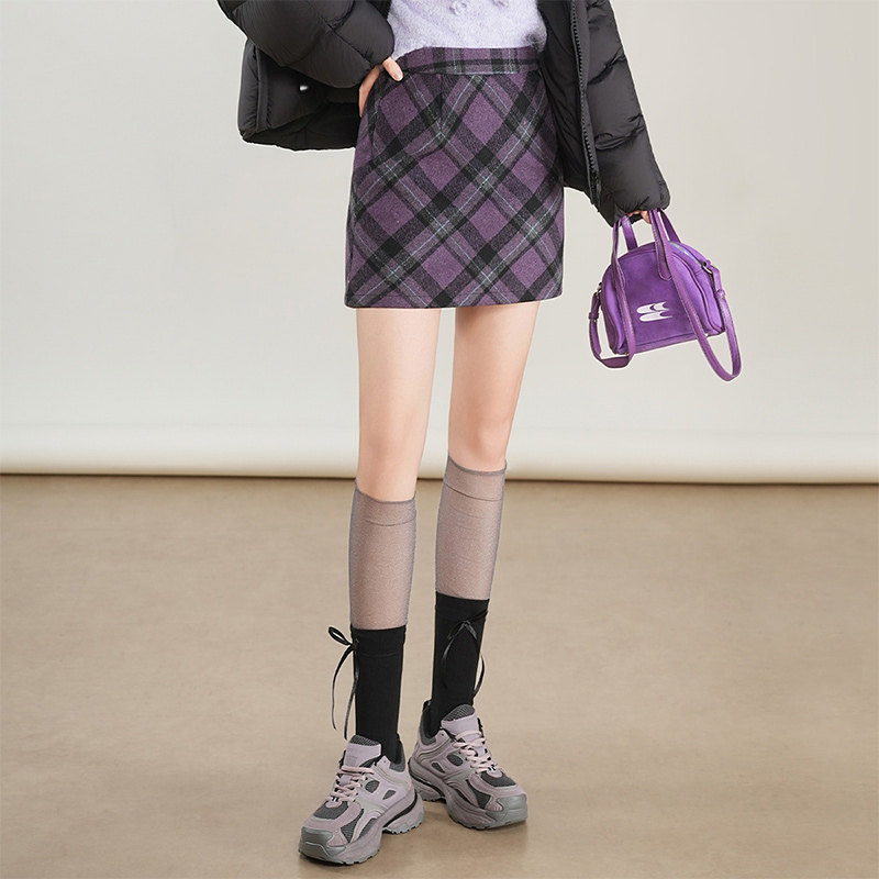 BANANA BABY2025年冬季新款复古格纹半身裙女高腰小个子时尚短裙