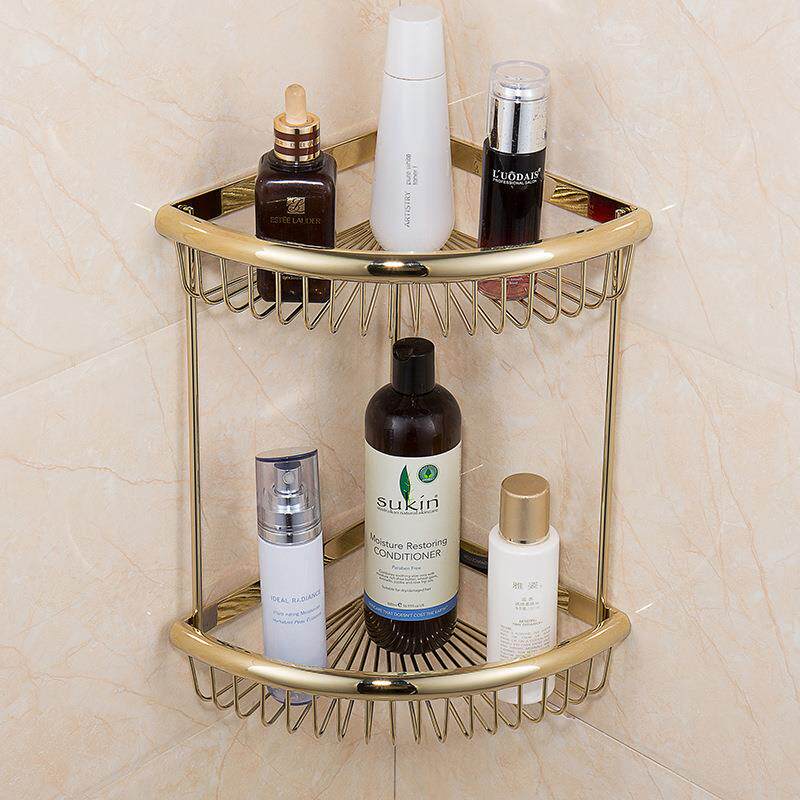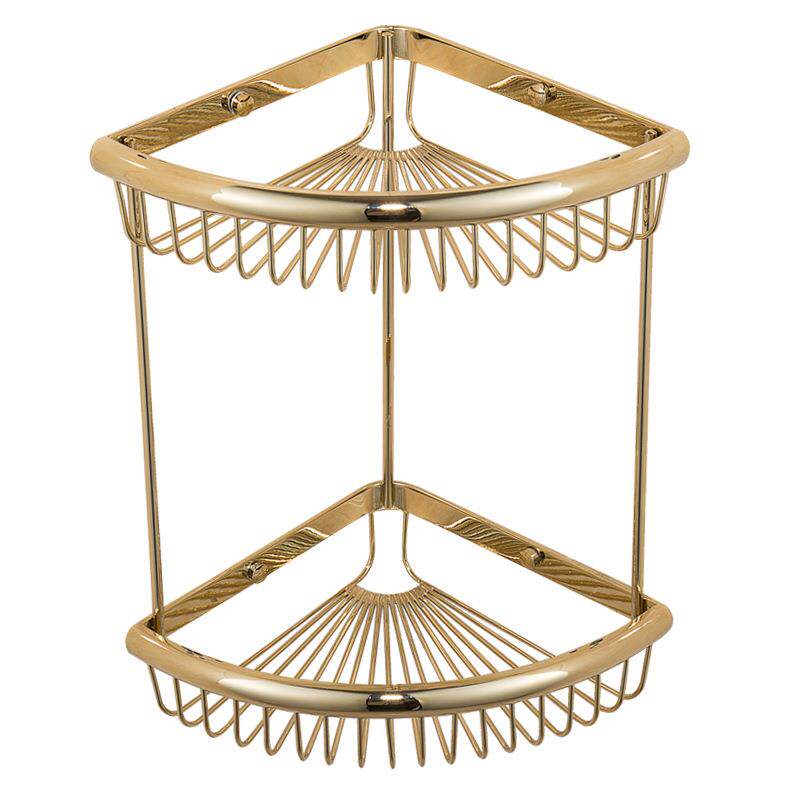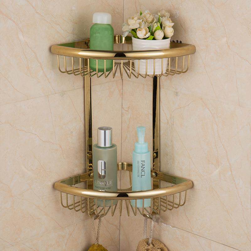 欧式全铜金色卫生间淋浴房浴室挂件转角置物架单层三角篮仿古角篮