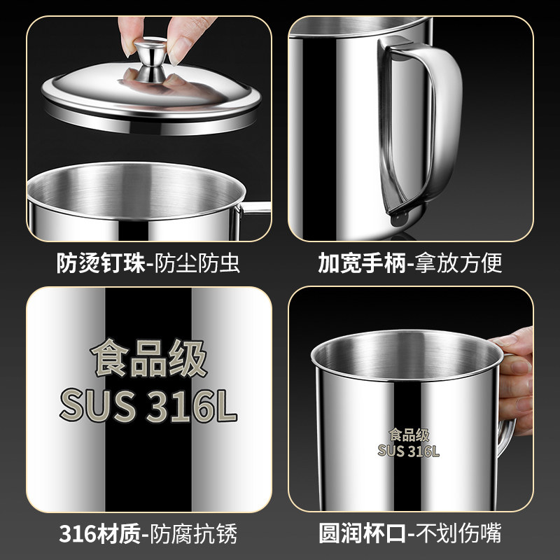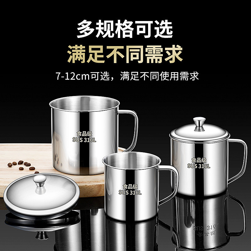 不锈钢儿童水杯带盖防摔食品级幼儿园加厚款家用喝水茶马克口杯子