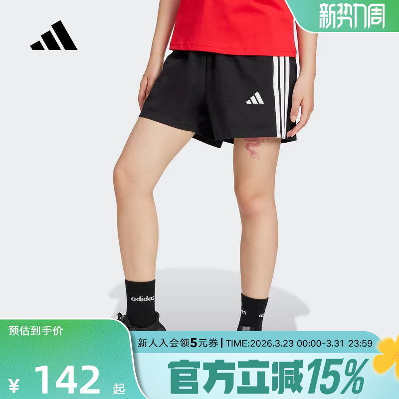 adidas阿迪达斯三条纹棉质高腰基础款五分裤夏女针织短裤 JD0908