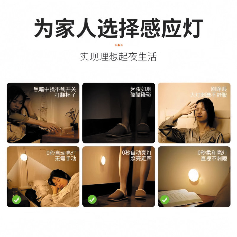 新款led长续航充电感应灯人来即亮夜间起夜过道磁吸小夜灯电池