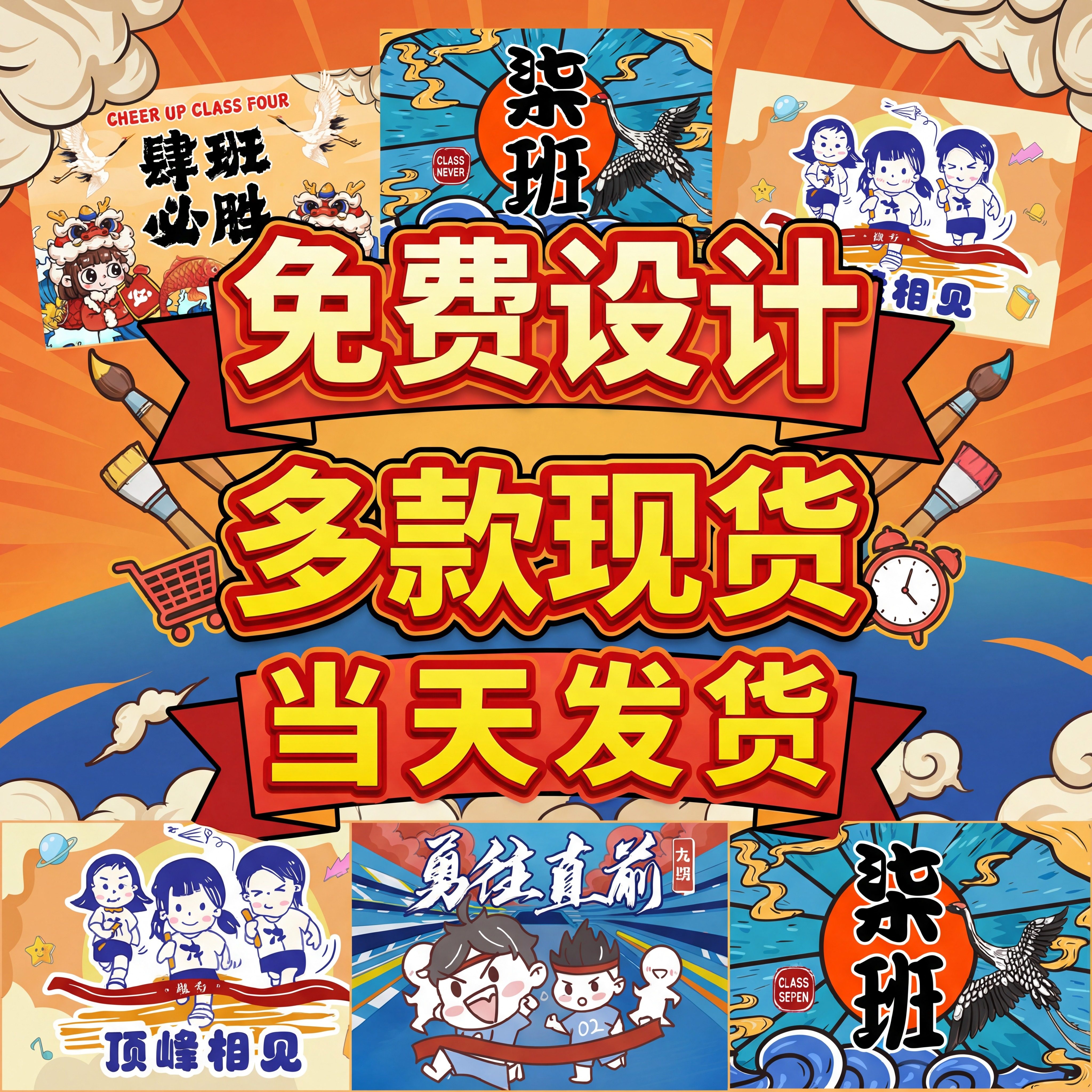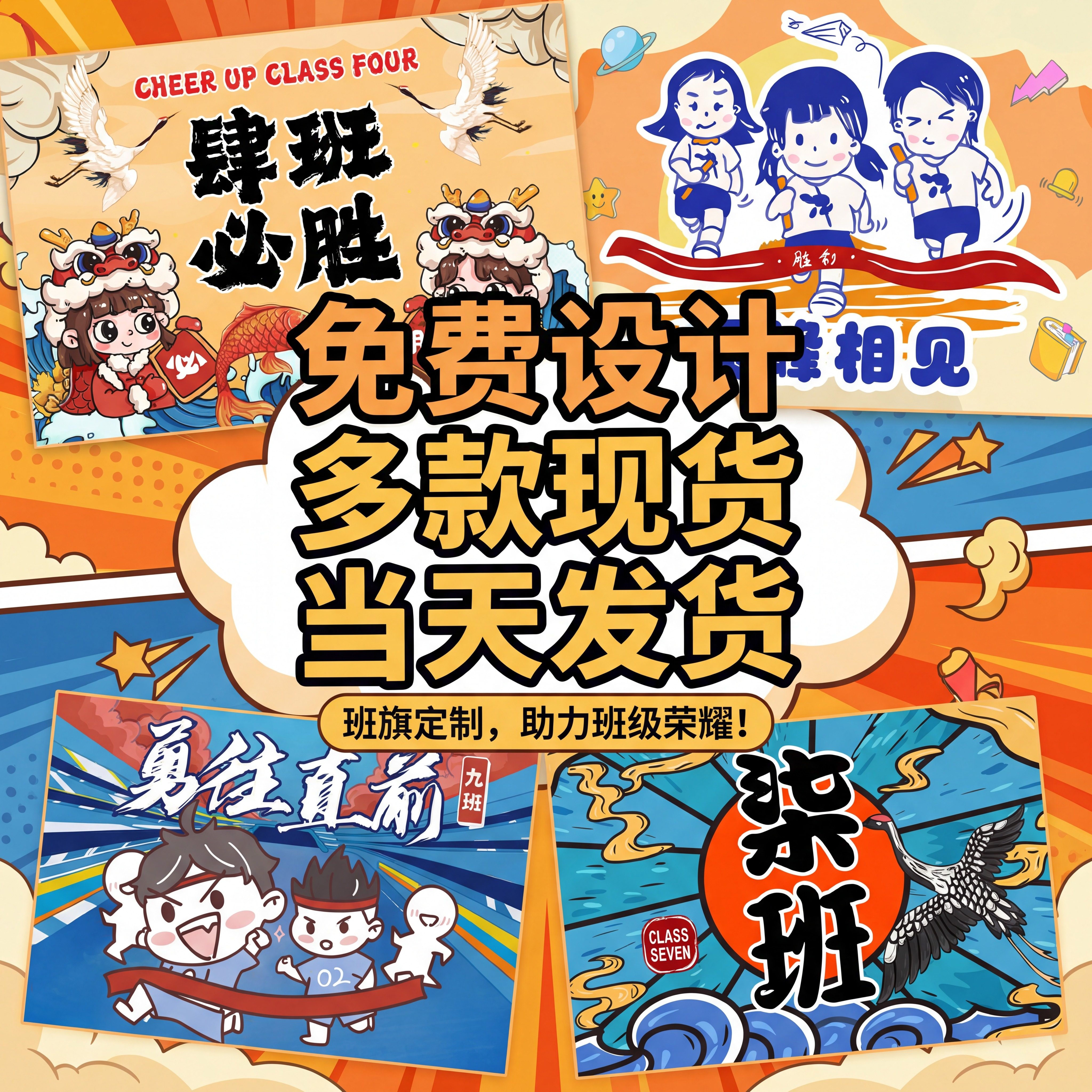 学生运动会班旗定制动漫图案设计校运会大旗初高中比赛活动手举带杆助威队旗开幕式队员入场必胜彩旗定做