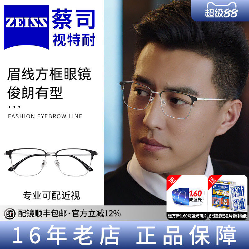 德国蔡司眼镜近视男眉框散光纯钛超轻镜片定制度数可配蓝光女镜框