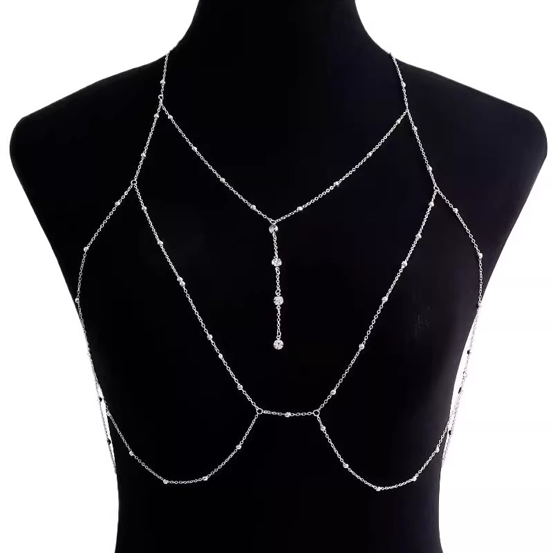 甜酷辣妹身体链胸链欧美高级感锁骨链亮片纯欲后背链性感锁骨链女