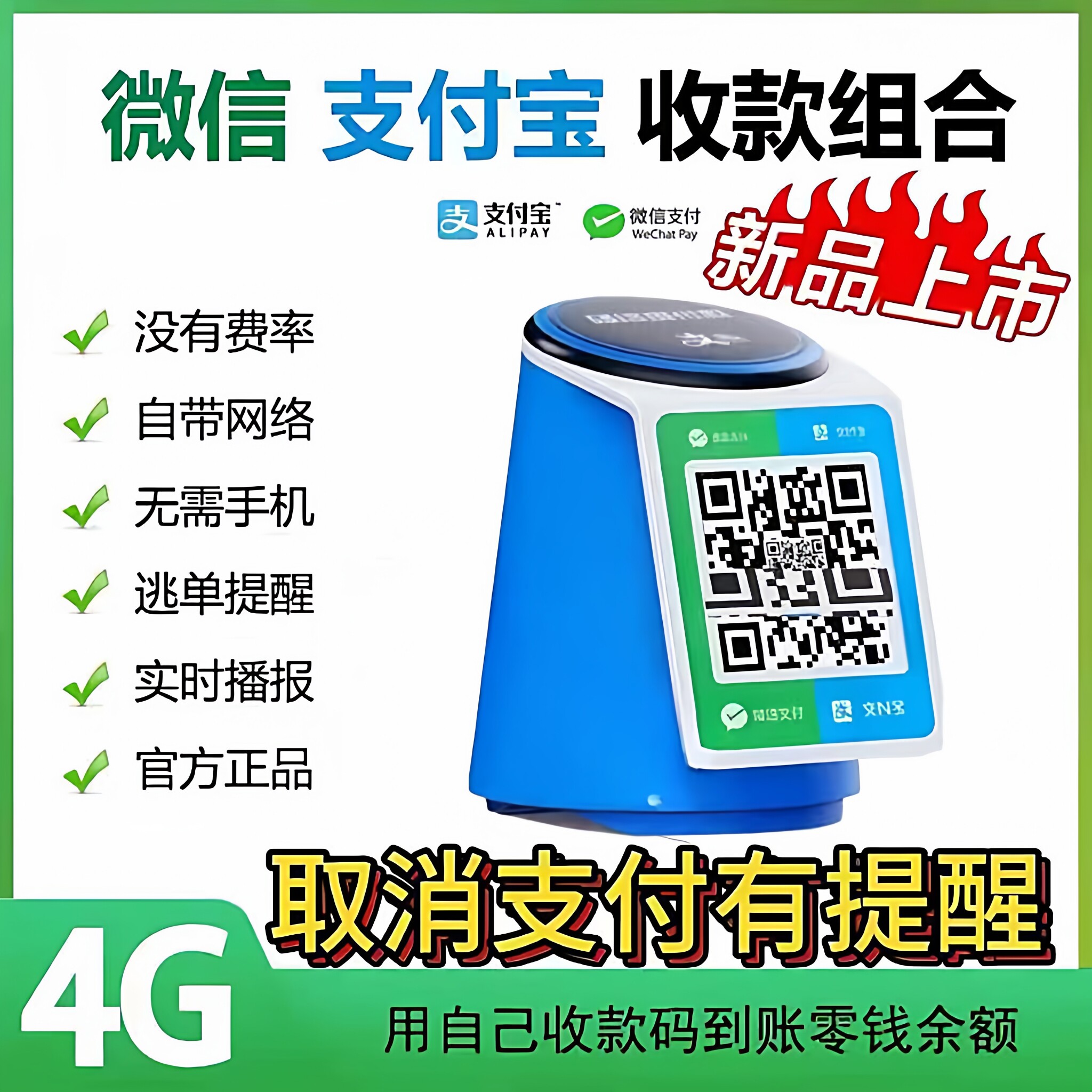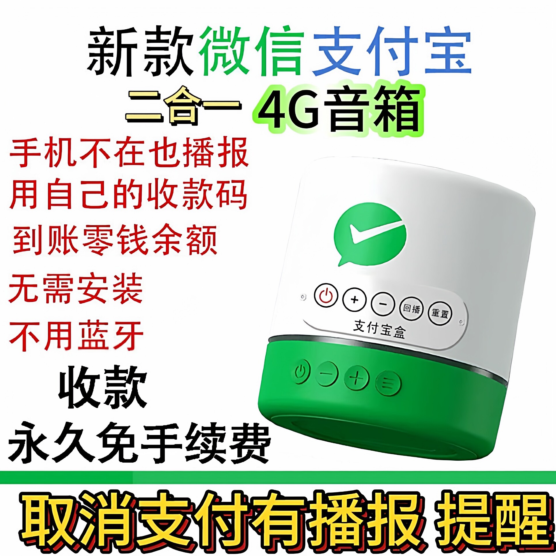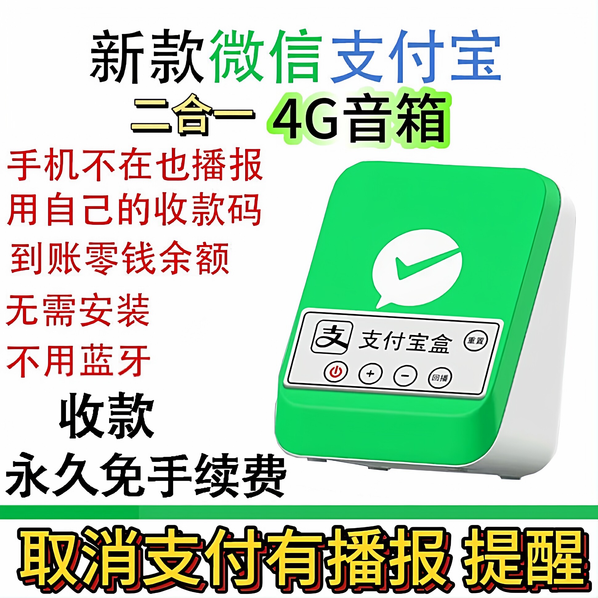 收款音响一体机微信支付宝二合一付钱语音播报器免蓝牙自带4G网络