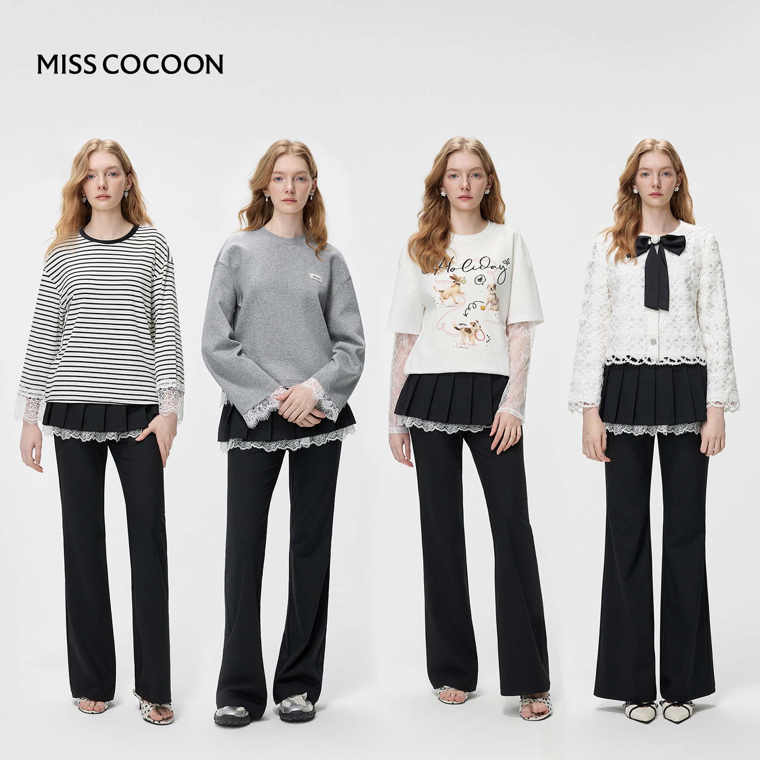 MISSCOCOON可可尼蕾丝花边假两件裙裤女2026春季新款莱赛尔休闲裤