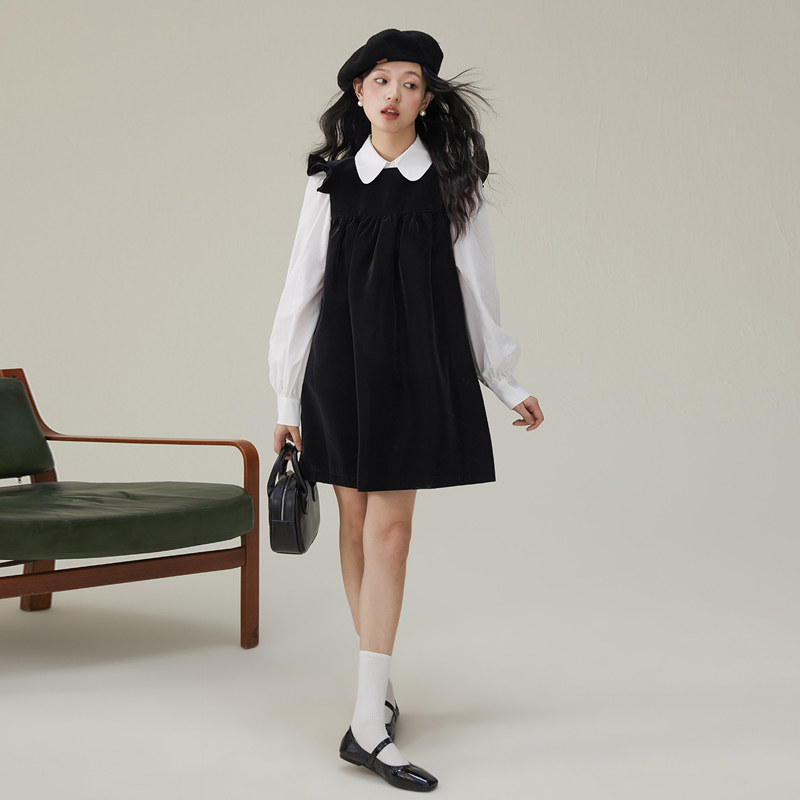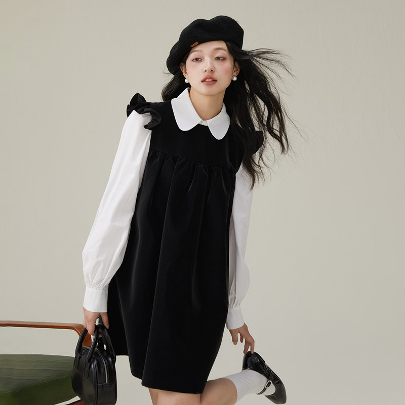 one more文墨2025初秋季背心裙小飞袖连衣裙女气质高级感小黑裙