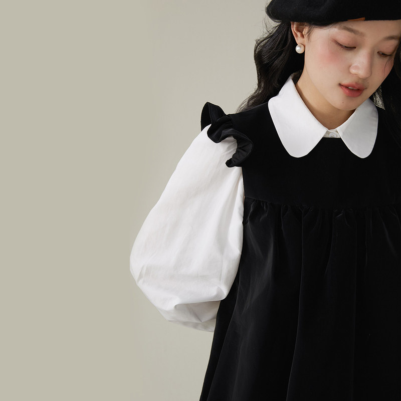 iqcq气球熊时尚辣妹套装秋季抹胸连衣裙女收腰一字肩黑色蓬蓬裙子