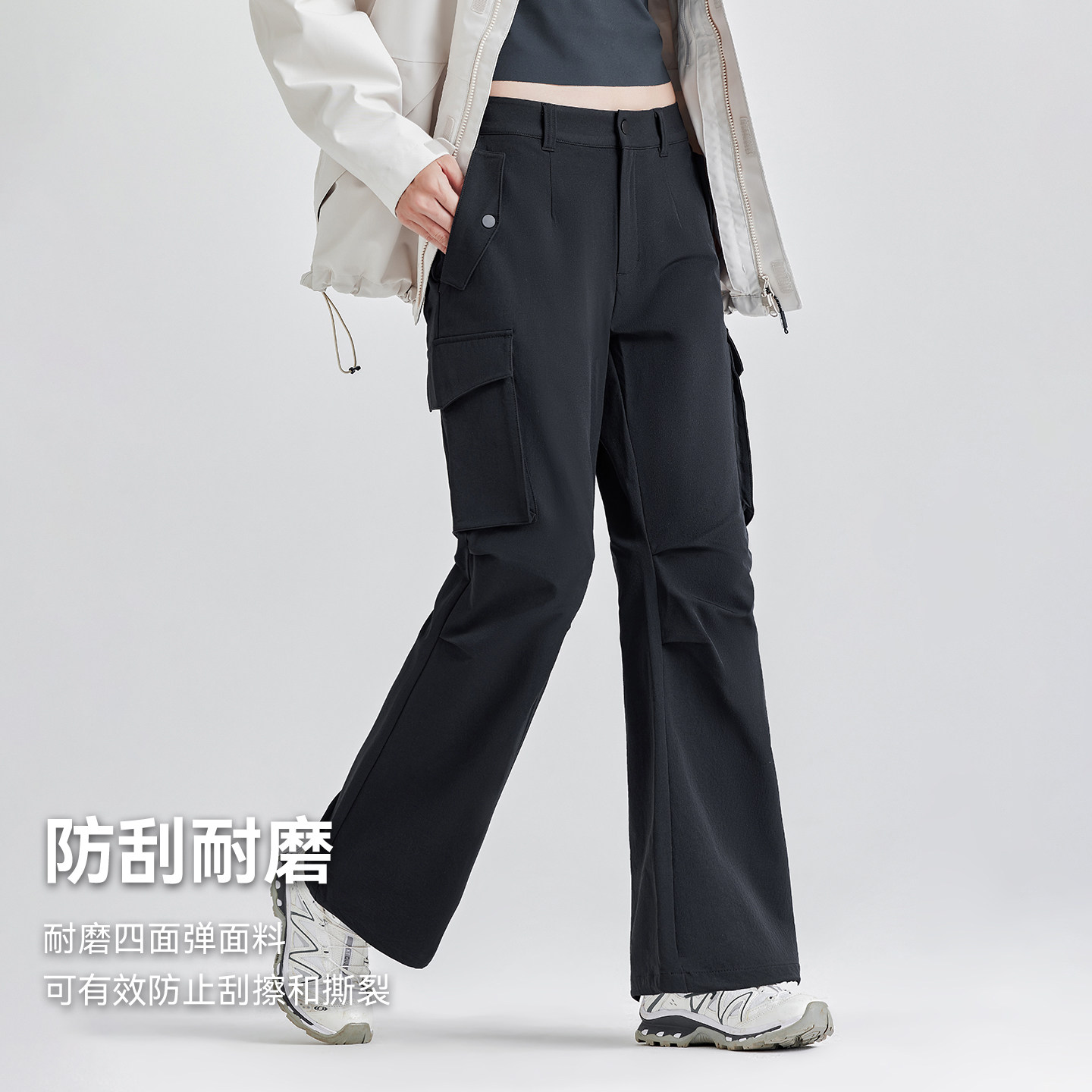 拓路者伞兵裤大口袋褶皱微喇工装裤女款秋季弹力耐磨喇叭裤休闲裤