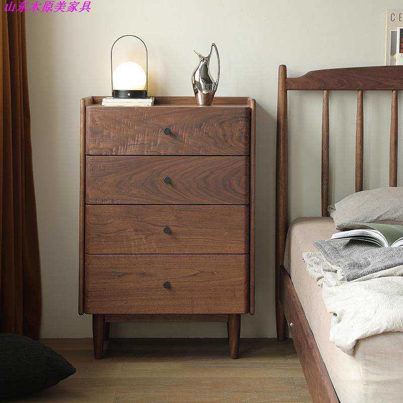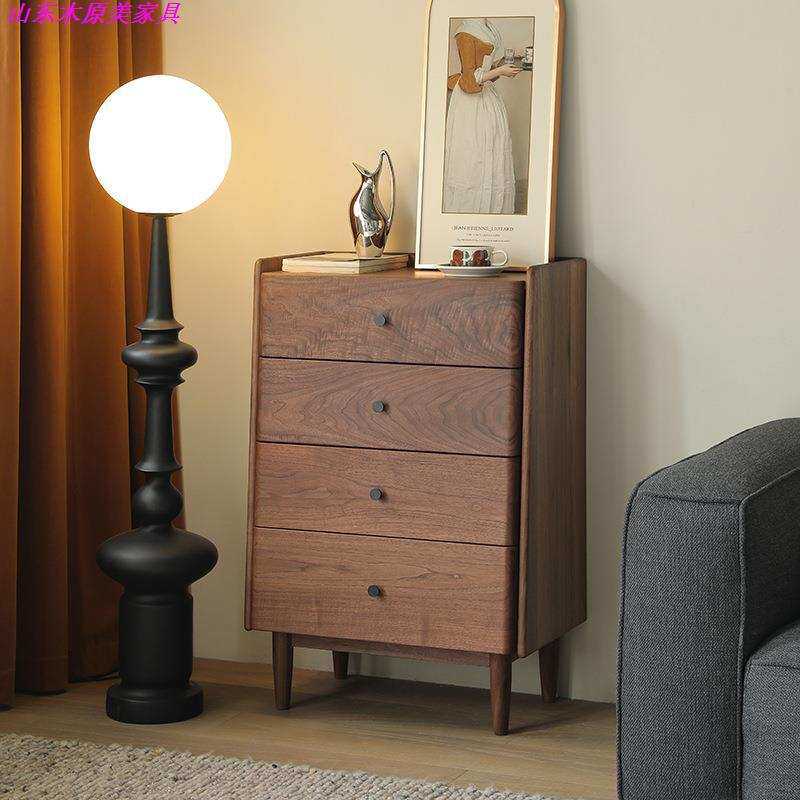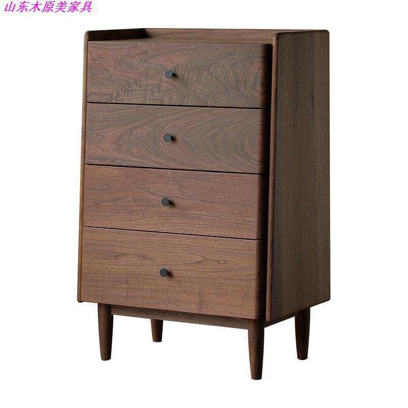 全实木黑胡桃卧室收纳四斗柜客厅极简型北欧边柜储物柜抽屉柜家具