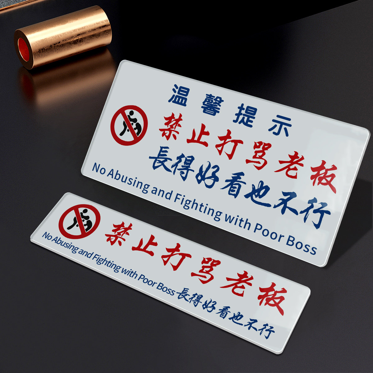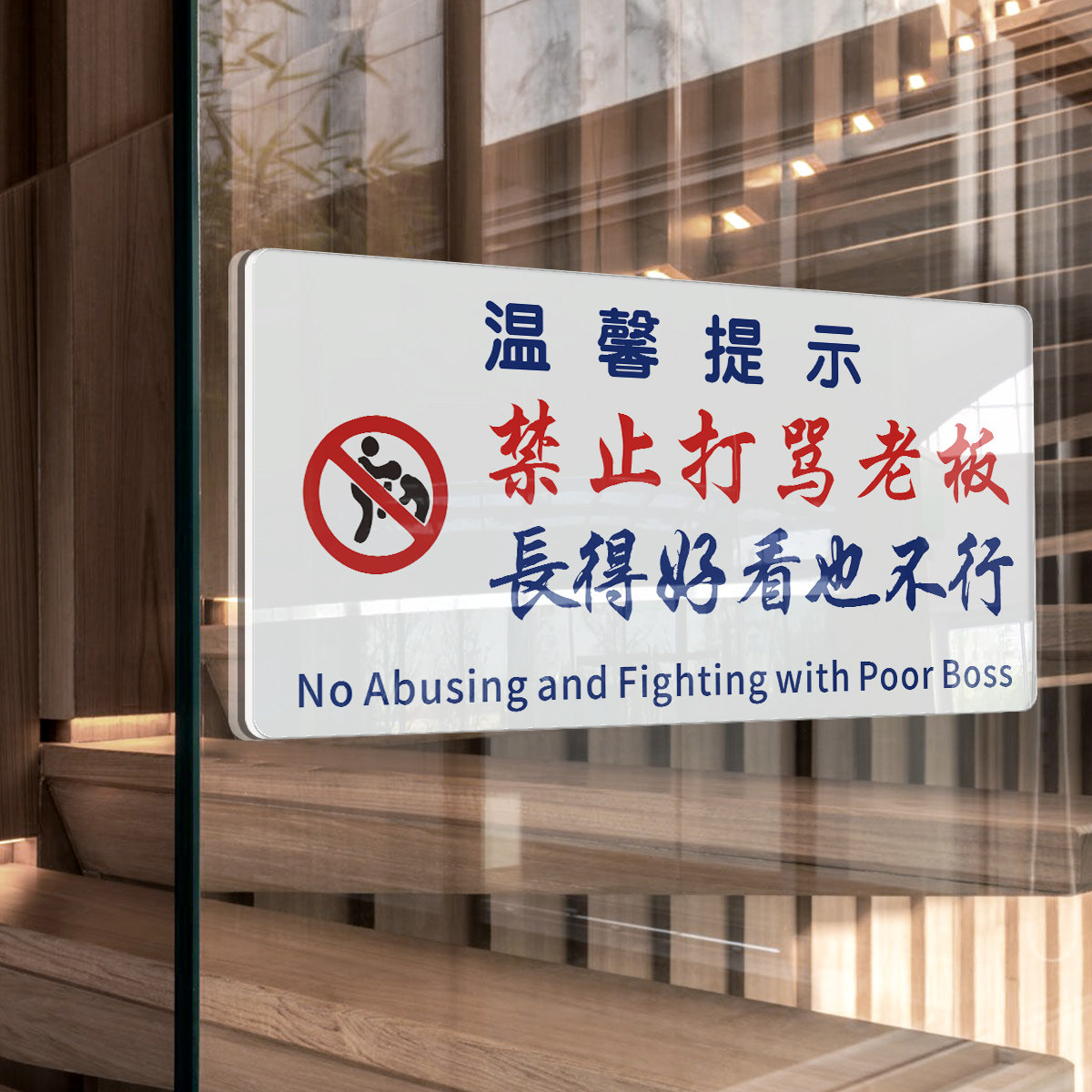 亚克力禁止打骂老板长的好看也不行提示牌搞笑语酒吧餐厅室内装饰贴港风ins警示标语搞笑文字亚克力贴牌定制