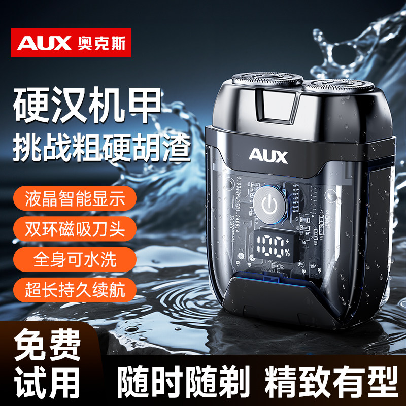 奥克斯剃须刀男士电动迷你便携小巧刮胡刀机甲水洗胡须刀官方正品