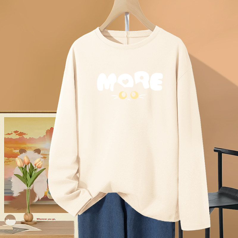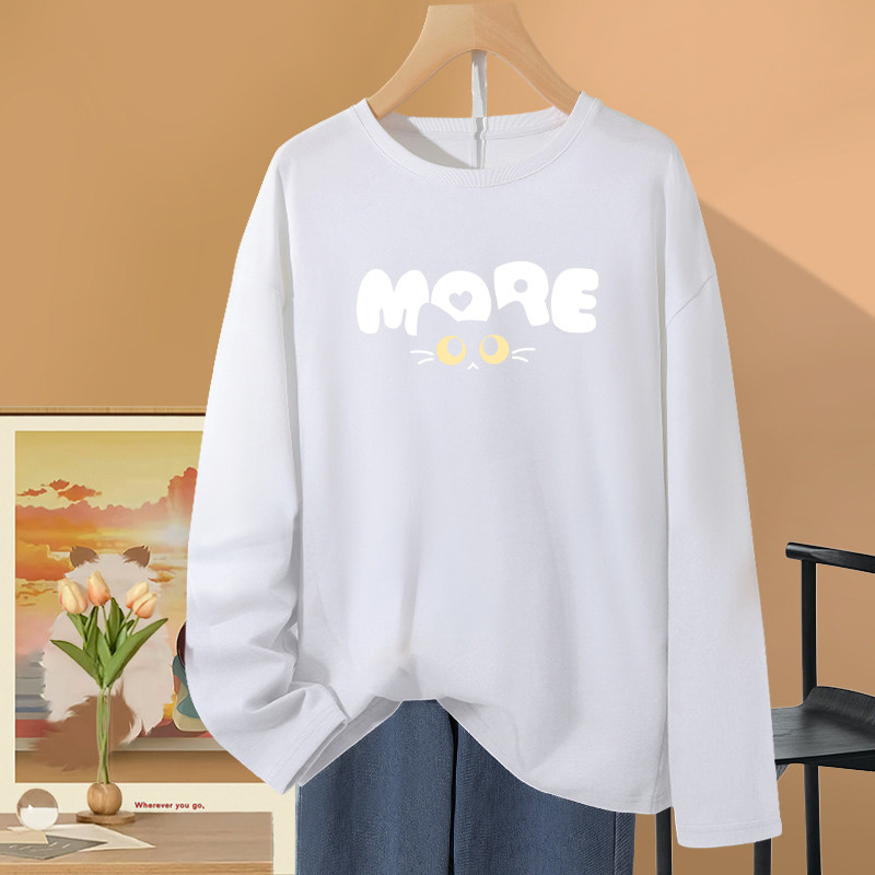三福长袖上衣女2025新款秋冬季圆领内搭打底衫修身白色t恤女装