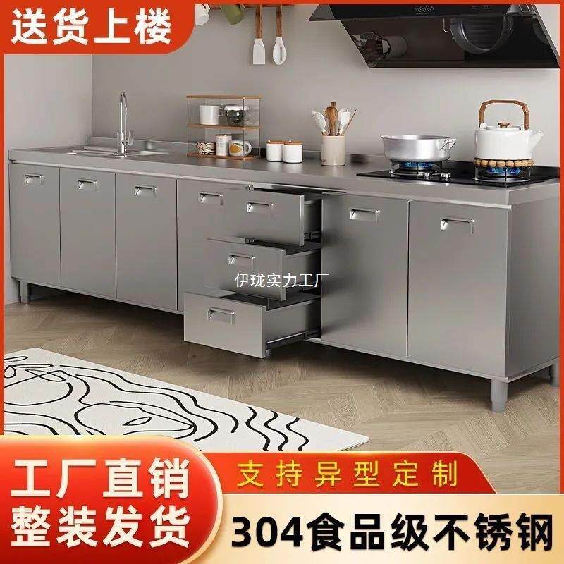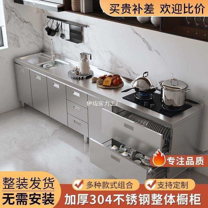 304整体不锈钢厨房橱柜特厚一体柜农村收纳整理碗柜灶台大操作台