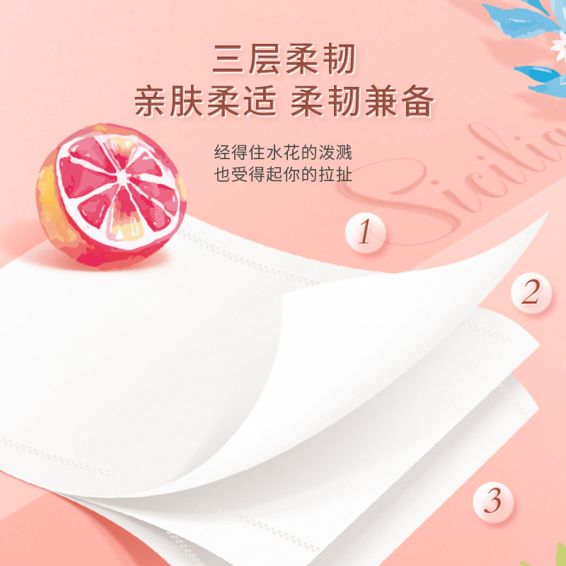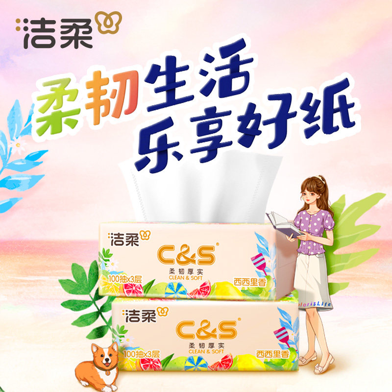 3包/8包/18包/24包洁柔家用实惠装抽纸西西里香3层100抽原生木浆