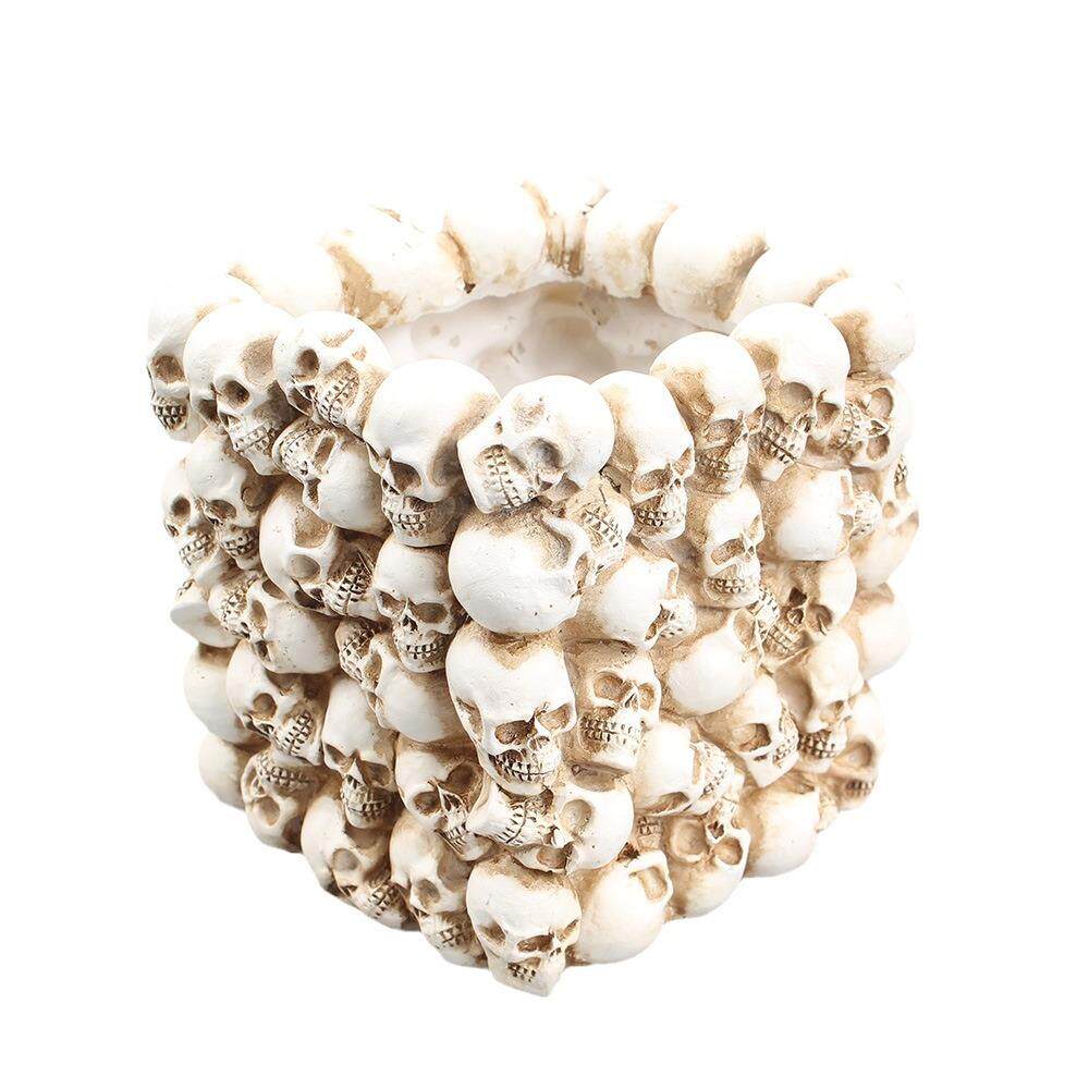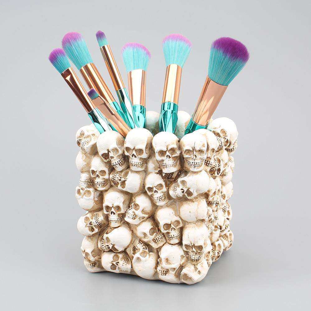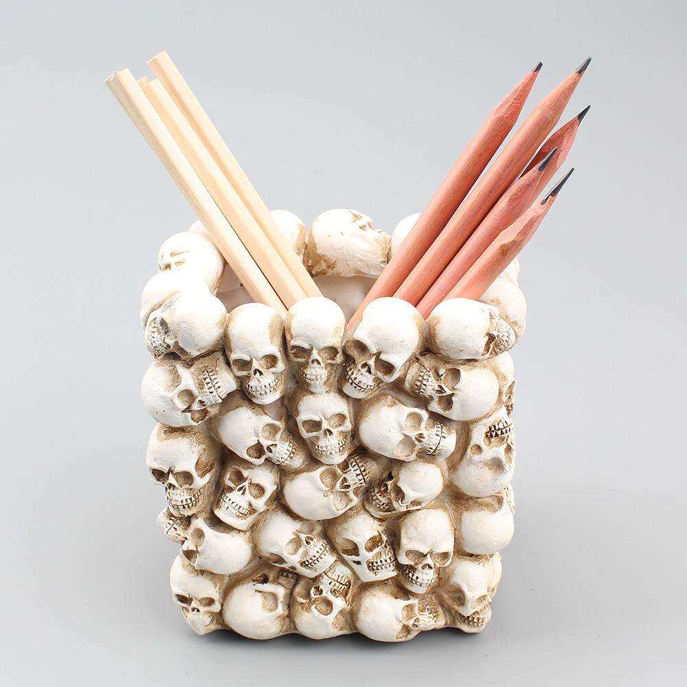 方形小骷髅笔筒收纳桌面化妆笔刷收纳桶家居小盆栽哥特风装饰道具
