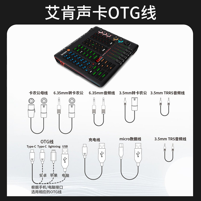 m8/m2/迷笛/ixi 艾肯声卡平果otg安卓Type-c数据线原装直播链接线