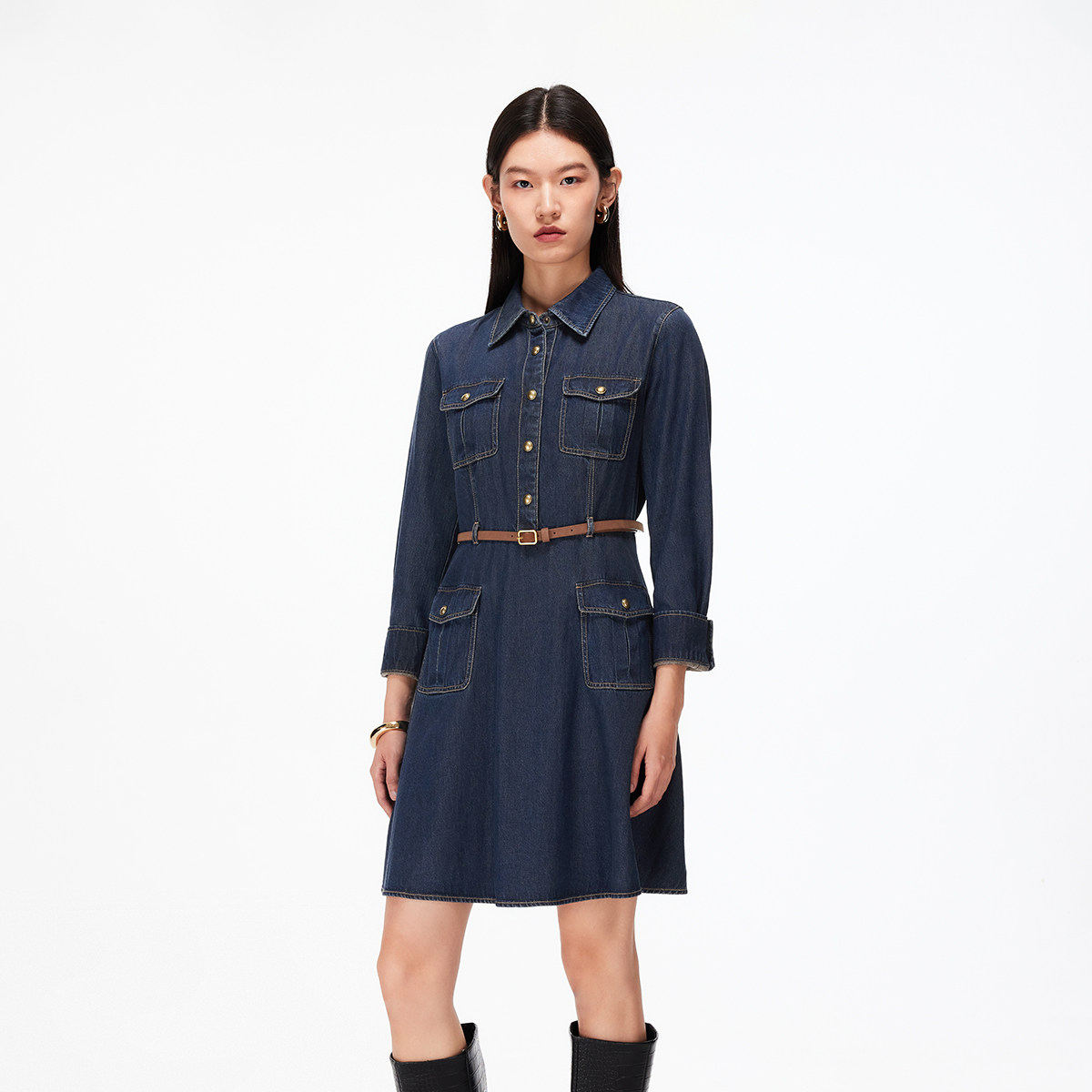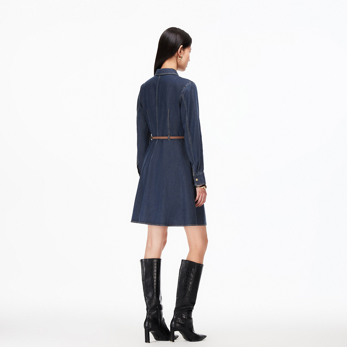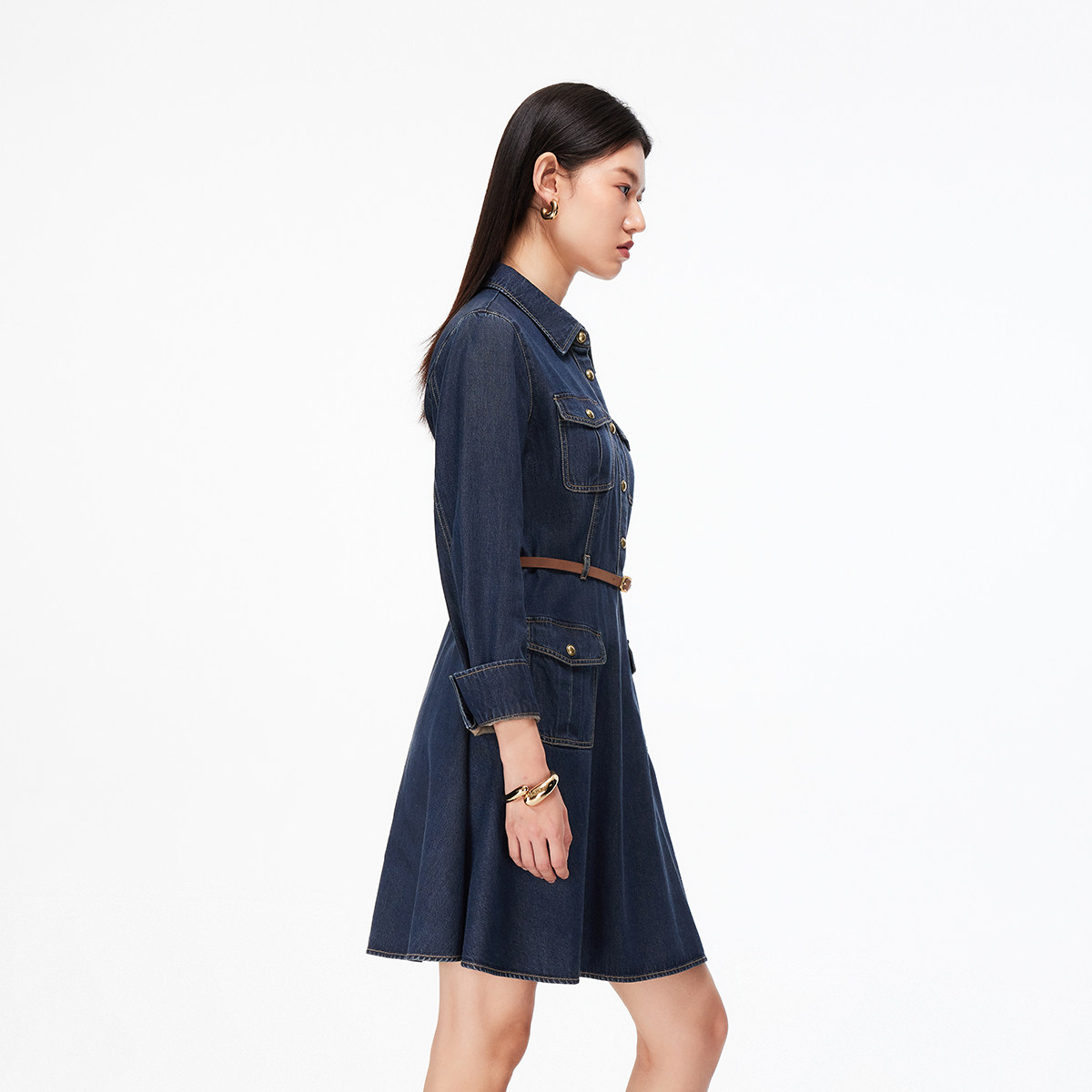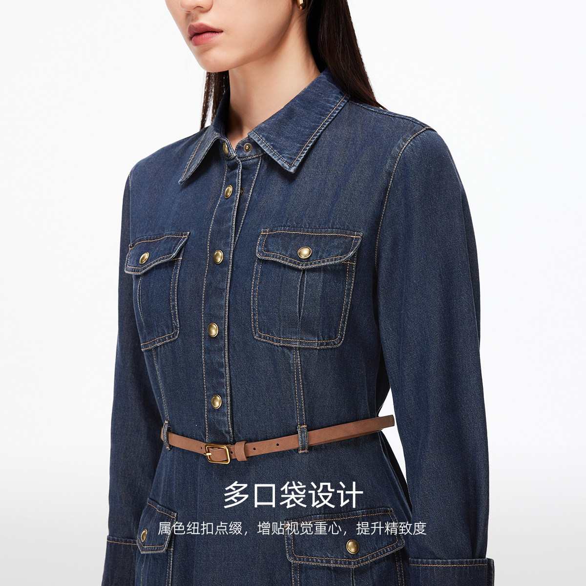 Vero Moda连衣裙2025秋新款牛仔风撞色腰带牛仔长裙325342018