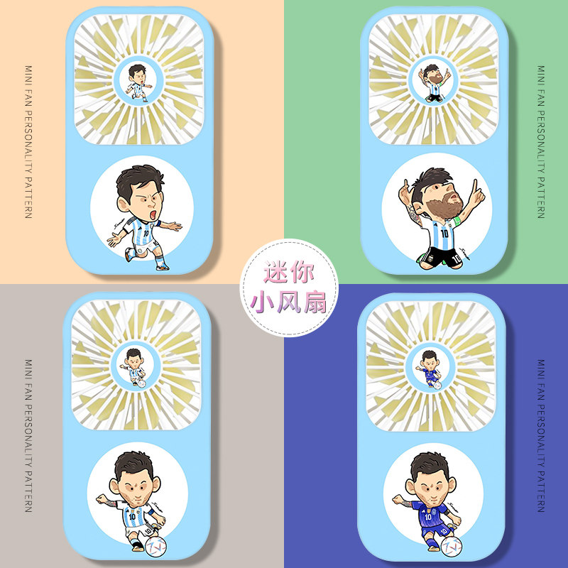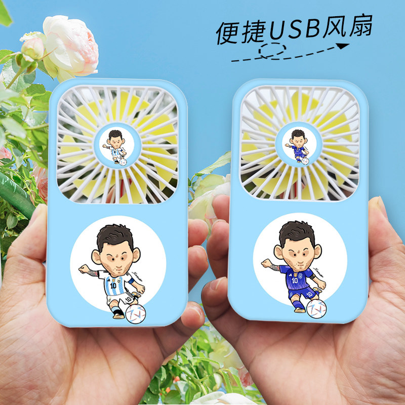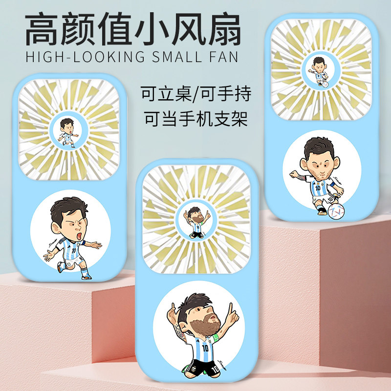 时尚卡通梅西小风扇静音办公室桌上电风扇潮流足球C罗usb小风扇手拿小风扇学生宿舍小型电风扇户外手持小风扇