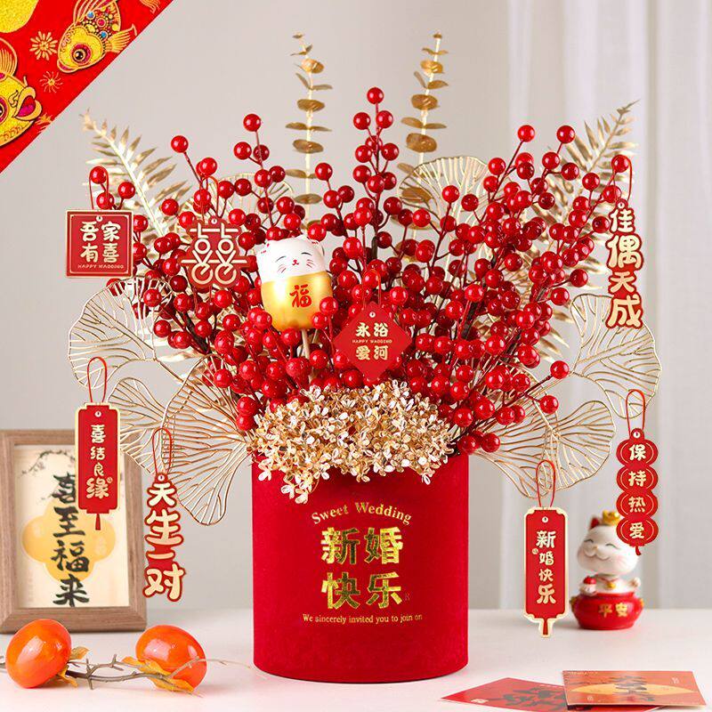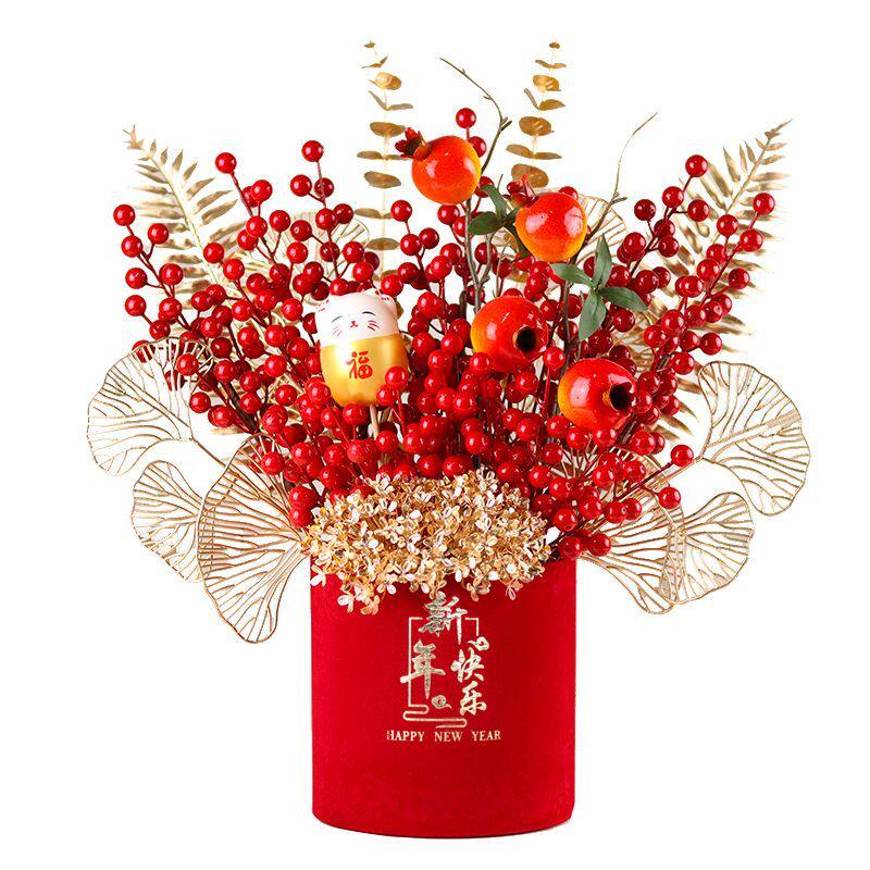 过年新年乔迁之喜福桶摆件发财果2025红果盆栽客厅装饰品真花开业