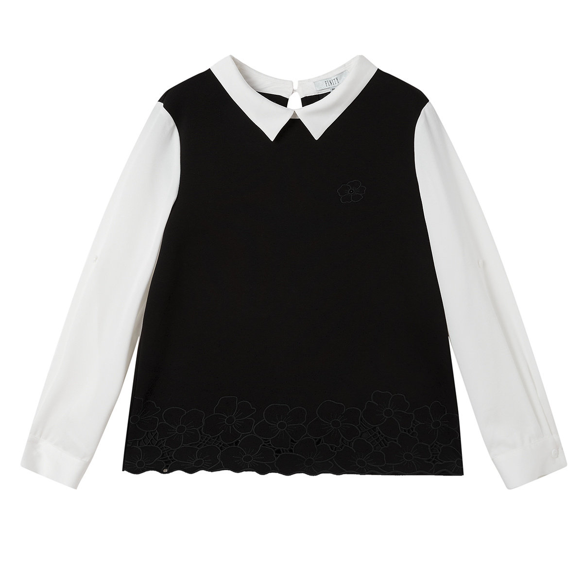 FINITY菲妮迪雪纺衫2026春新款黑白撞色拼接休闲通勤长袖上衣女装