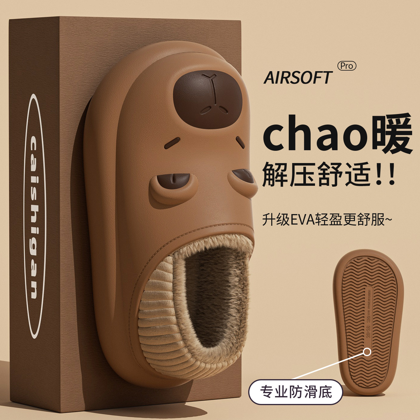 卡皮巴拉棉拖鞋女款2025室内家居防水可外穿亲子情侣棉拖男士厚底