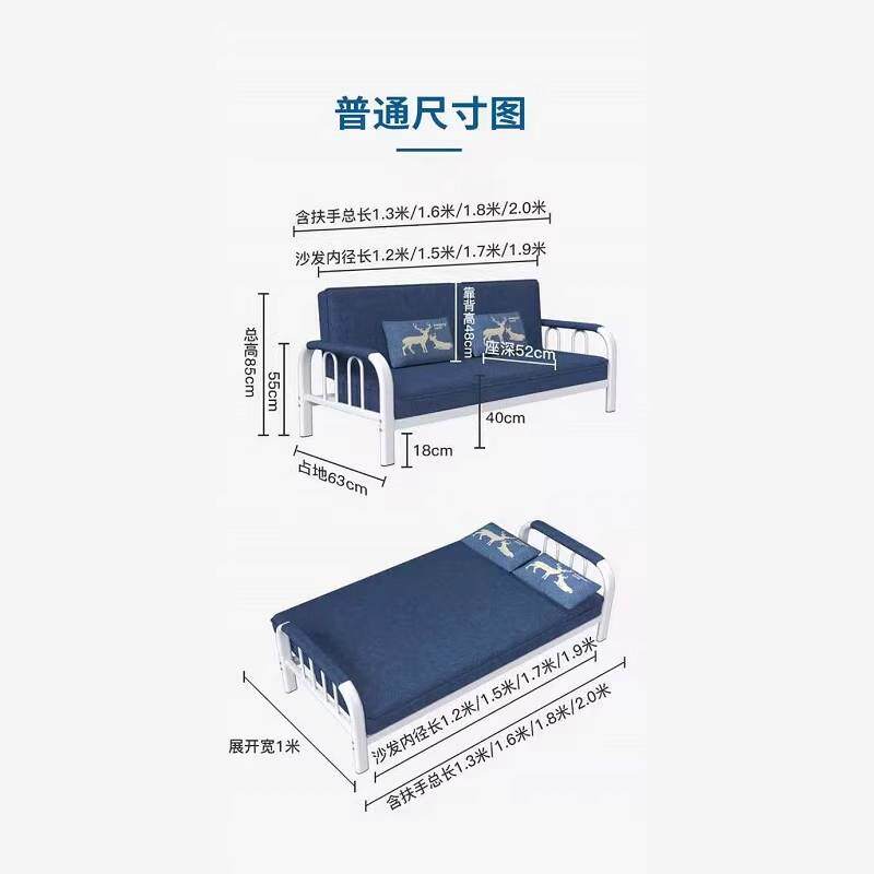 0A可折叠沙发床两用小户型客厅布艺简易铁艺单双人经济型出租房沙