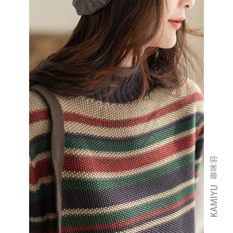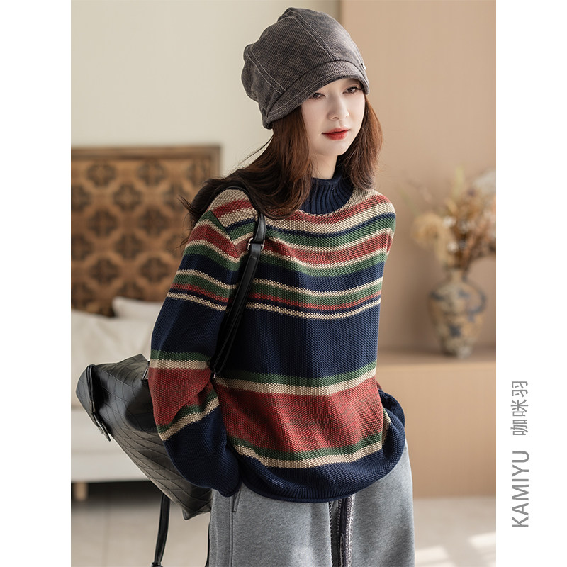咖咪羽毛衣女秋冬新款时尚流行半高领休闲条纹棉线女装上衣内搭厚