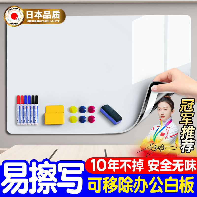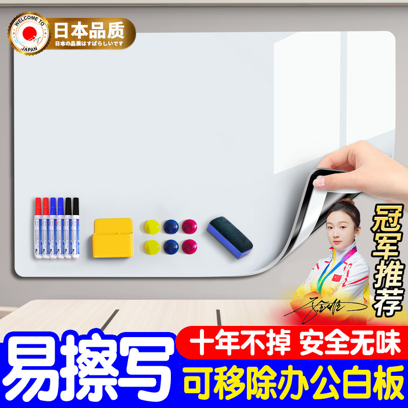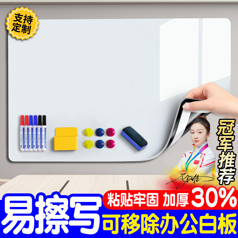 办公磁吸白板墙贴可移除不伤墙会议培训写字板儿童家用教学可擦小黑板墙上画画磁性贴纸涂鸦展示板定制软白板
