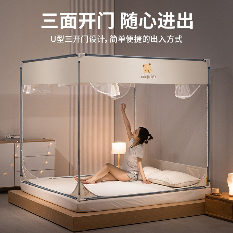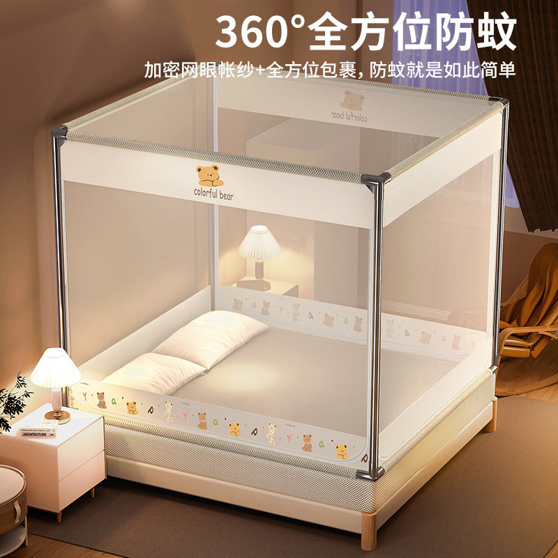 蚊帐家用2024新款印花床笠款防摔母婴级加厚加密防蚊纱帐风扇横杆