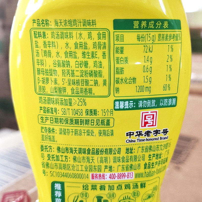海天浓缩鸡汁255g鸡汤高汤炒菜蒸煮煲汤鸡汤米线家用提鲜调味料