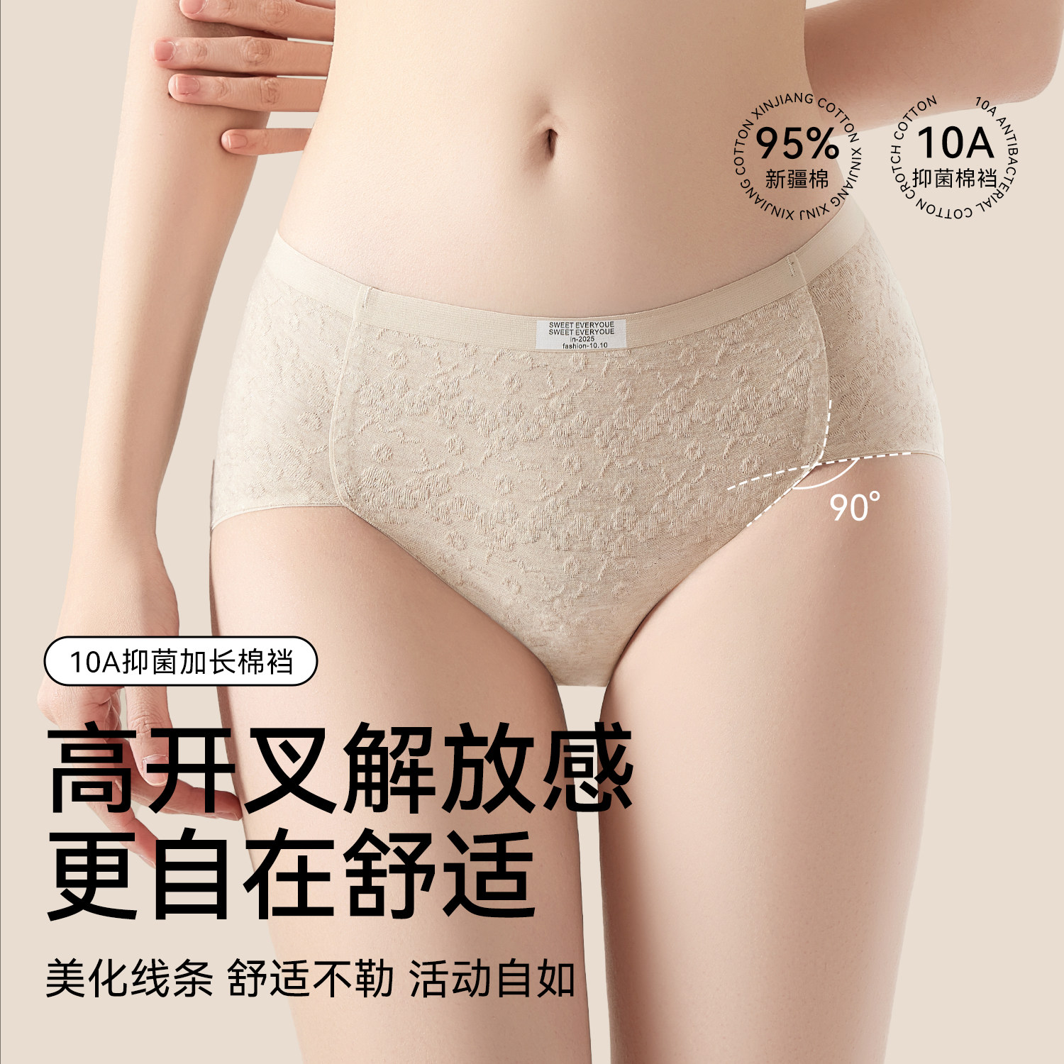 都市丽人内裤女纯棉抗菌全棉加长裆2026新款中腰高开叉女生三角裤