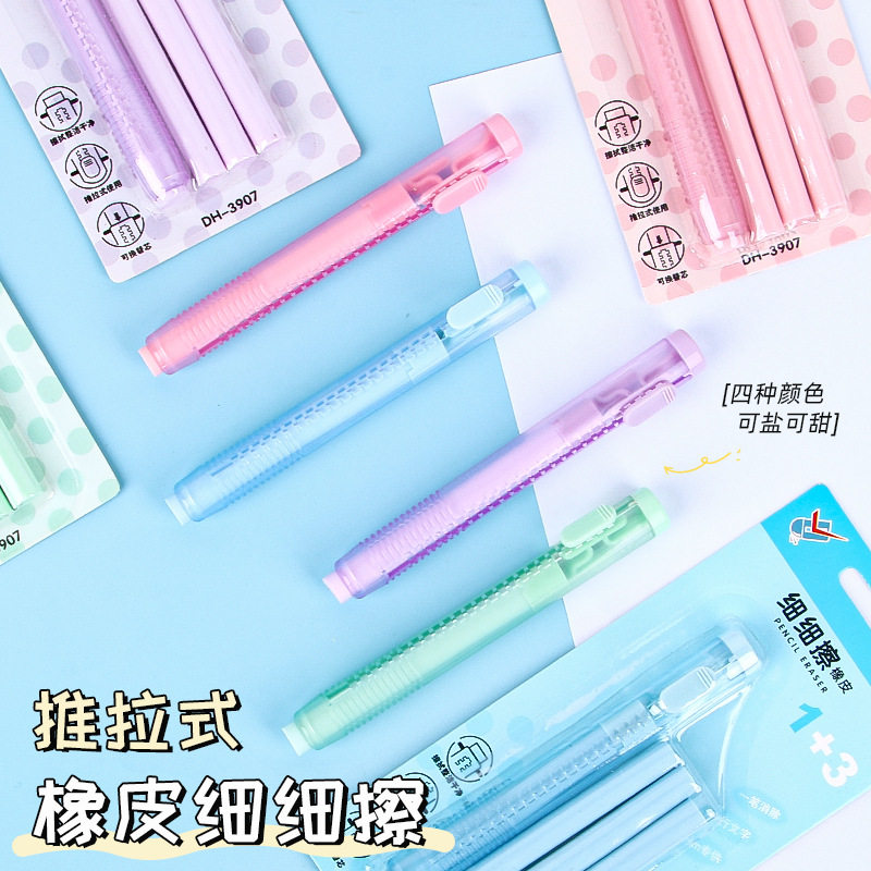 新款学生细细擦橡皮伸缩糖果色可爱按动橡皮檫笔形铅笔橡皮擦文具