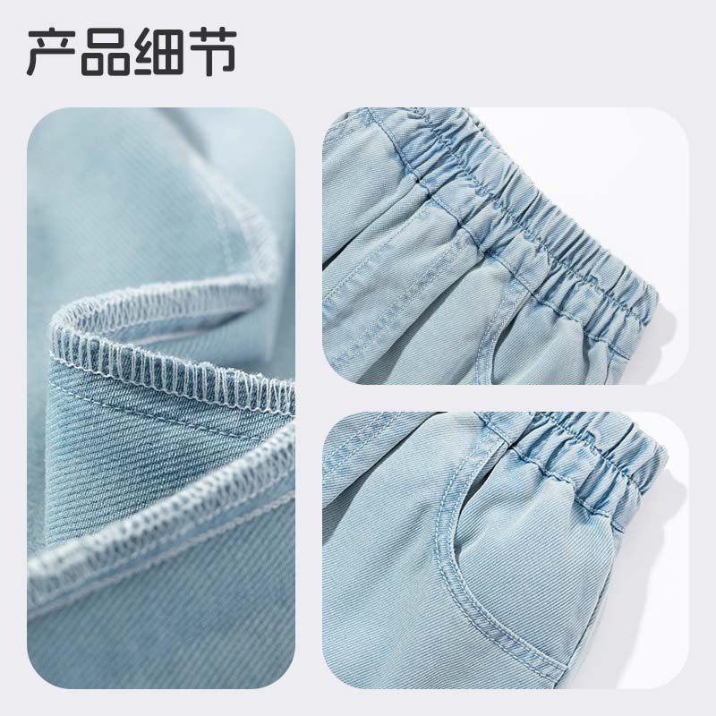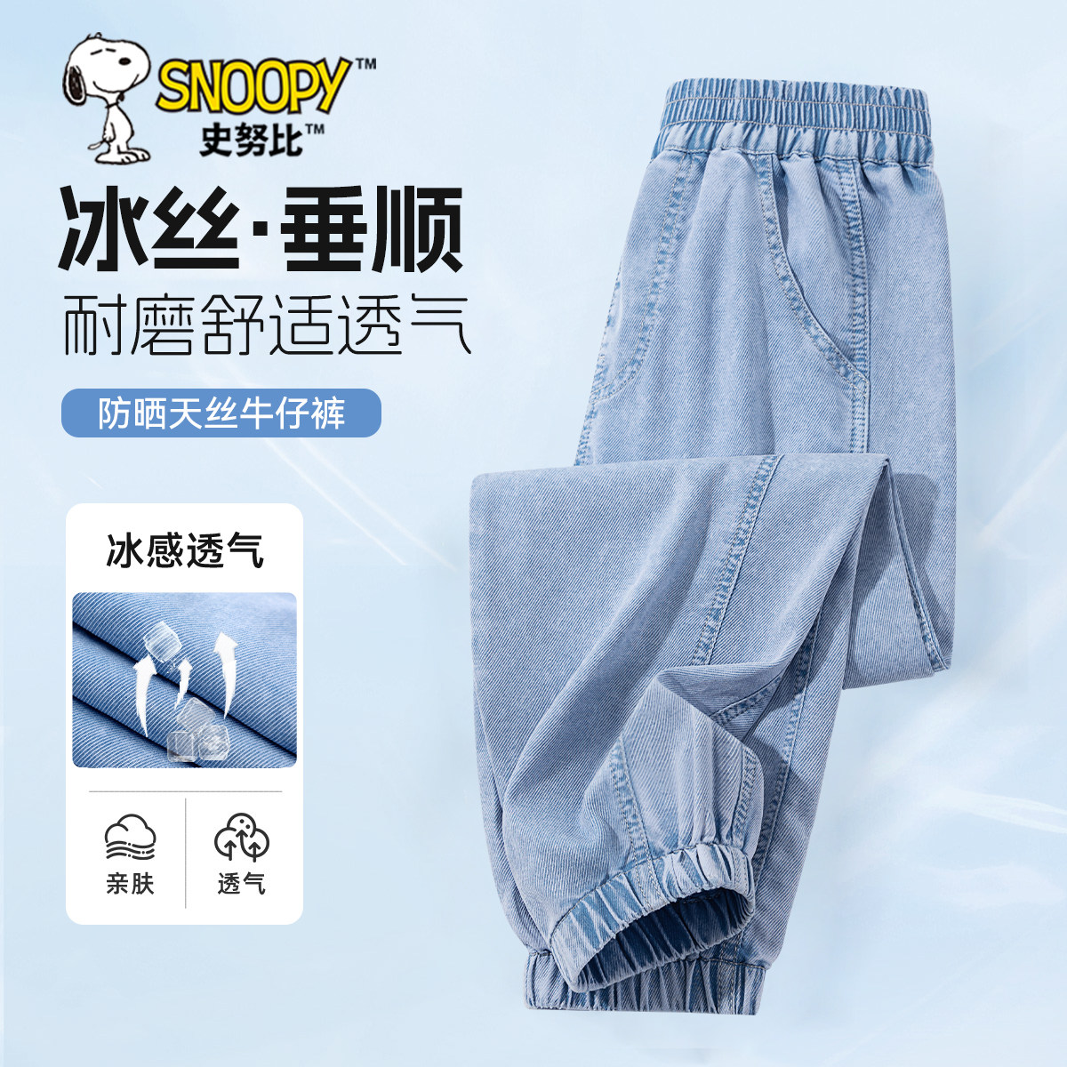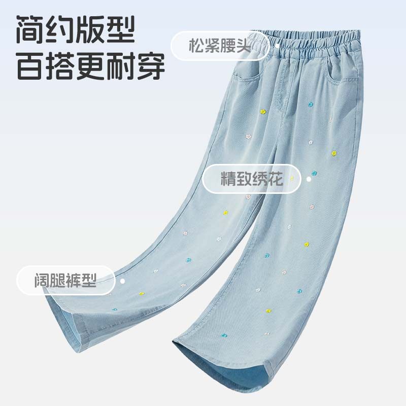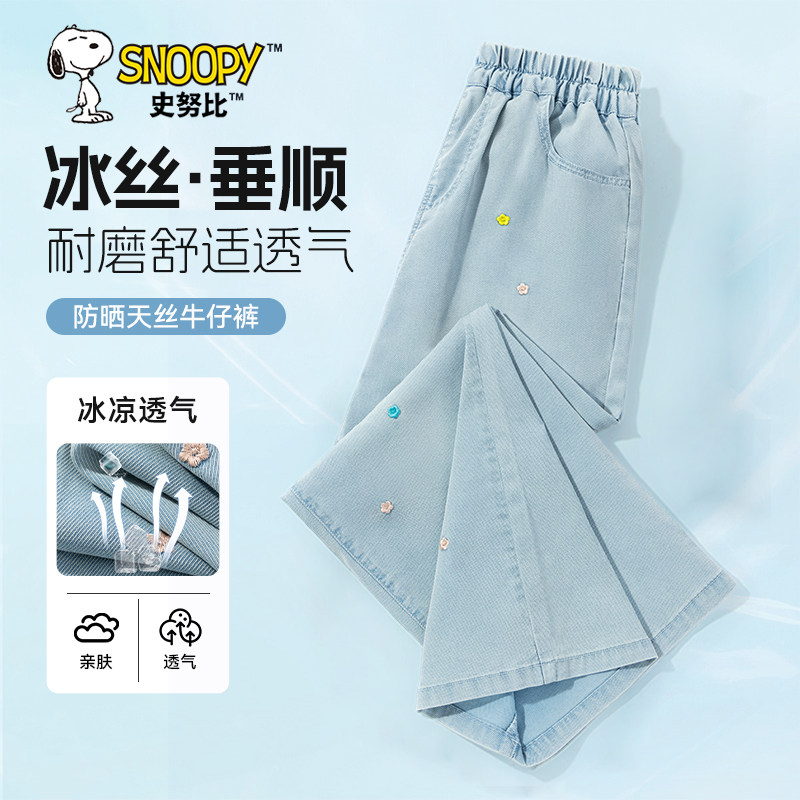 史努比女童天丝牛仔裤2025新款女大童绣花阔腿裤儿童夏季薄款裤子