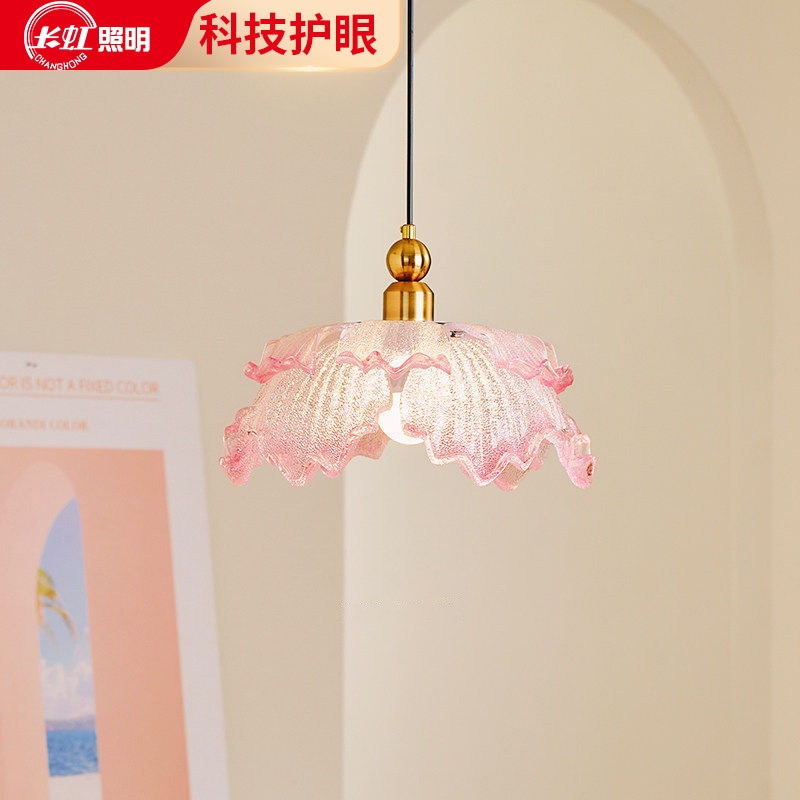 长虹 奶油风花瓣卧室吊灯2025新款玻璃餐厅灯创意护眼吧台吊线灯