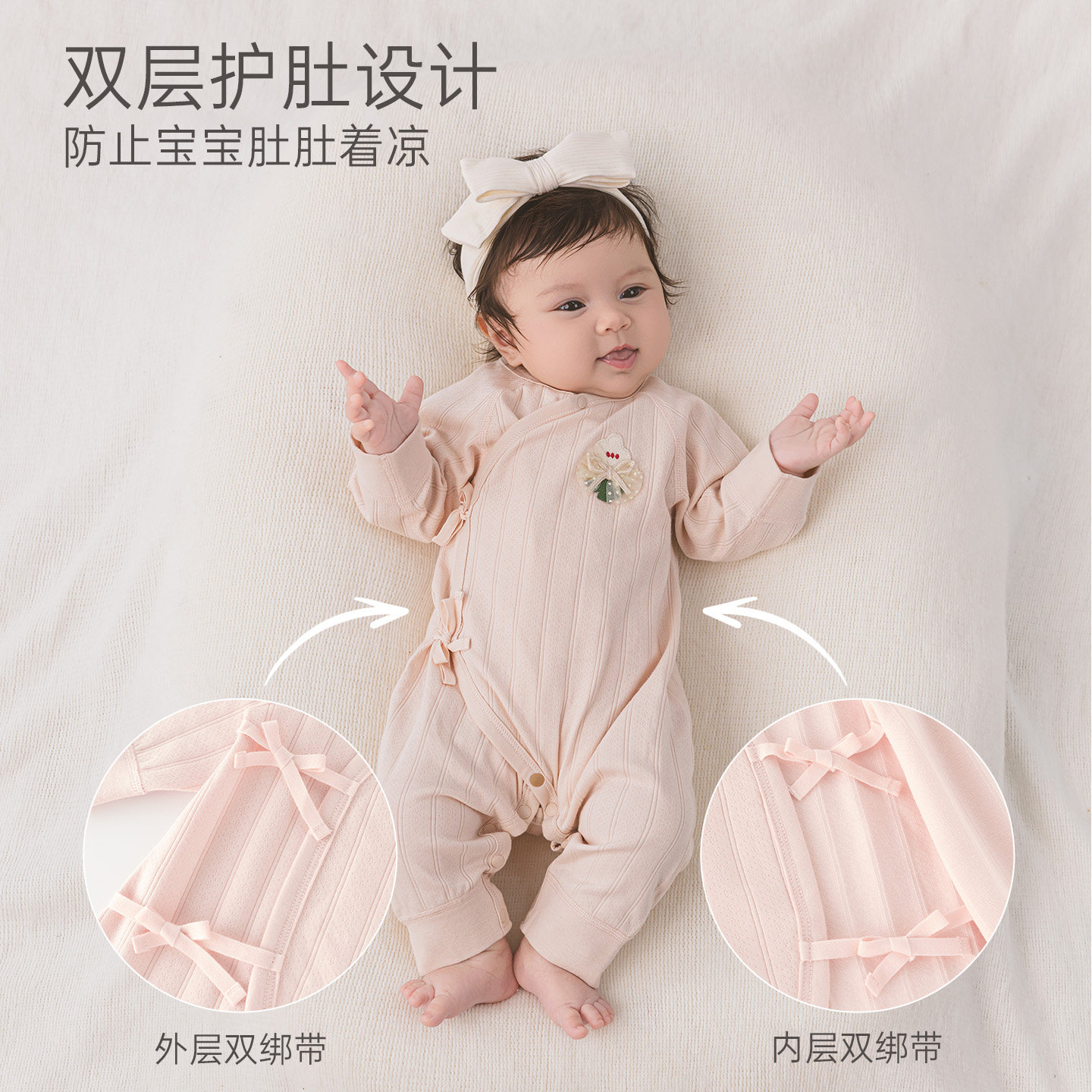木生棉新生儿长袖连体衣睡衣春秋季女宝宝纯棉绑带哈衣婴儿和尚服