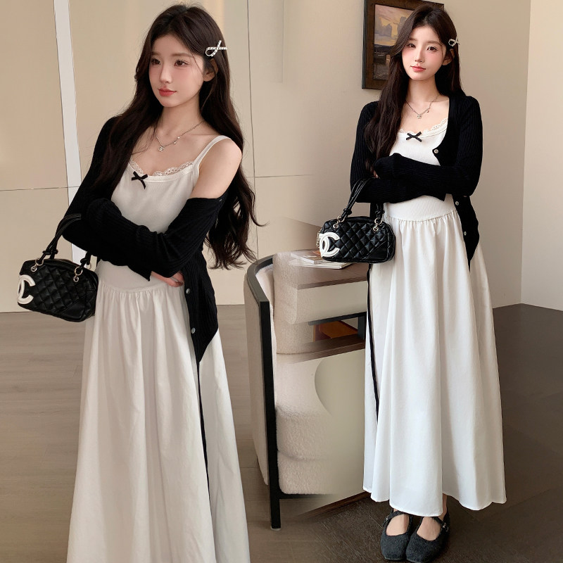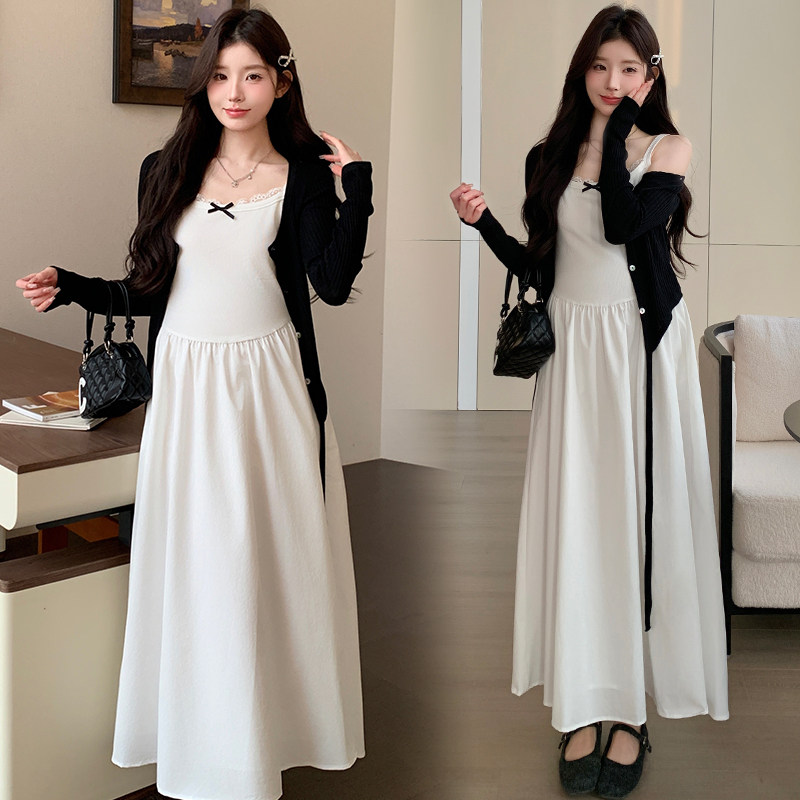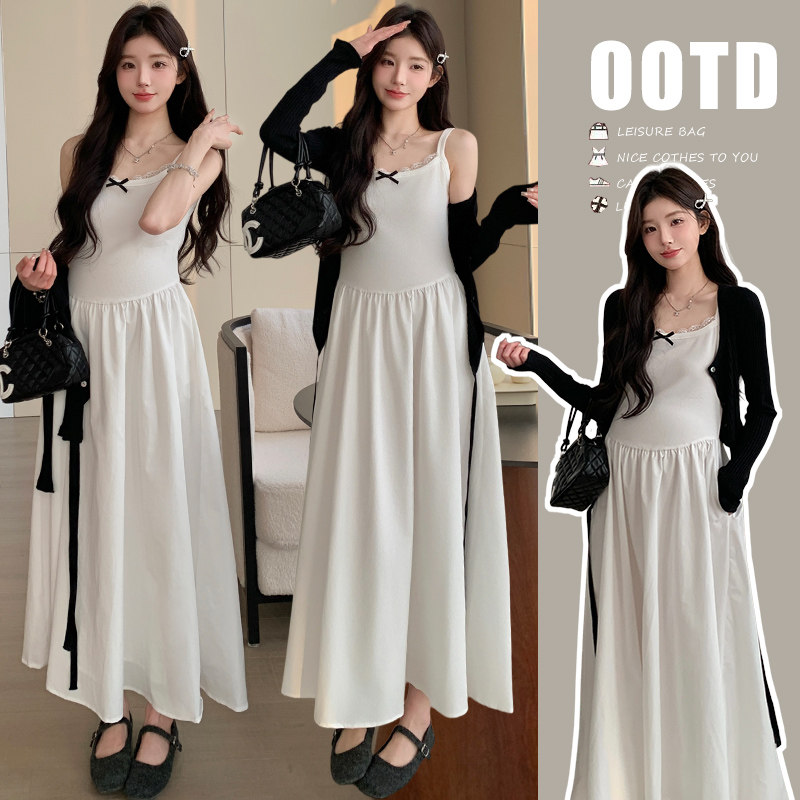 婧麒孕妇连衣裙春秋高级感2026新款长袖开衫吊带裙宽松套装两件套